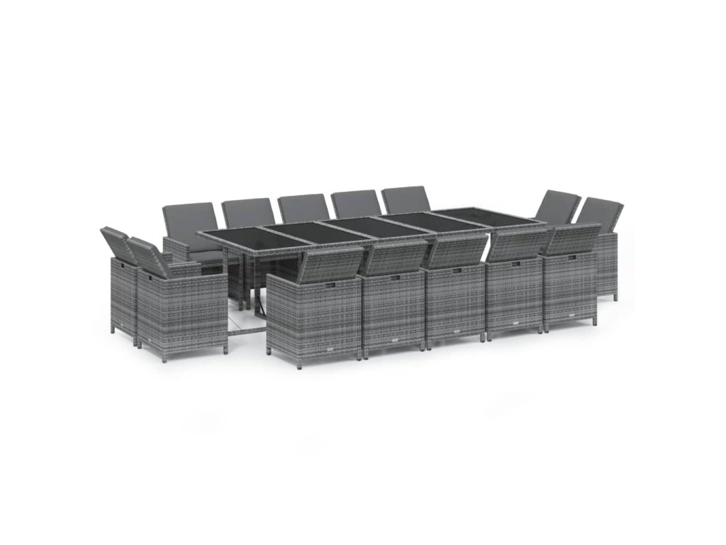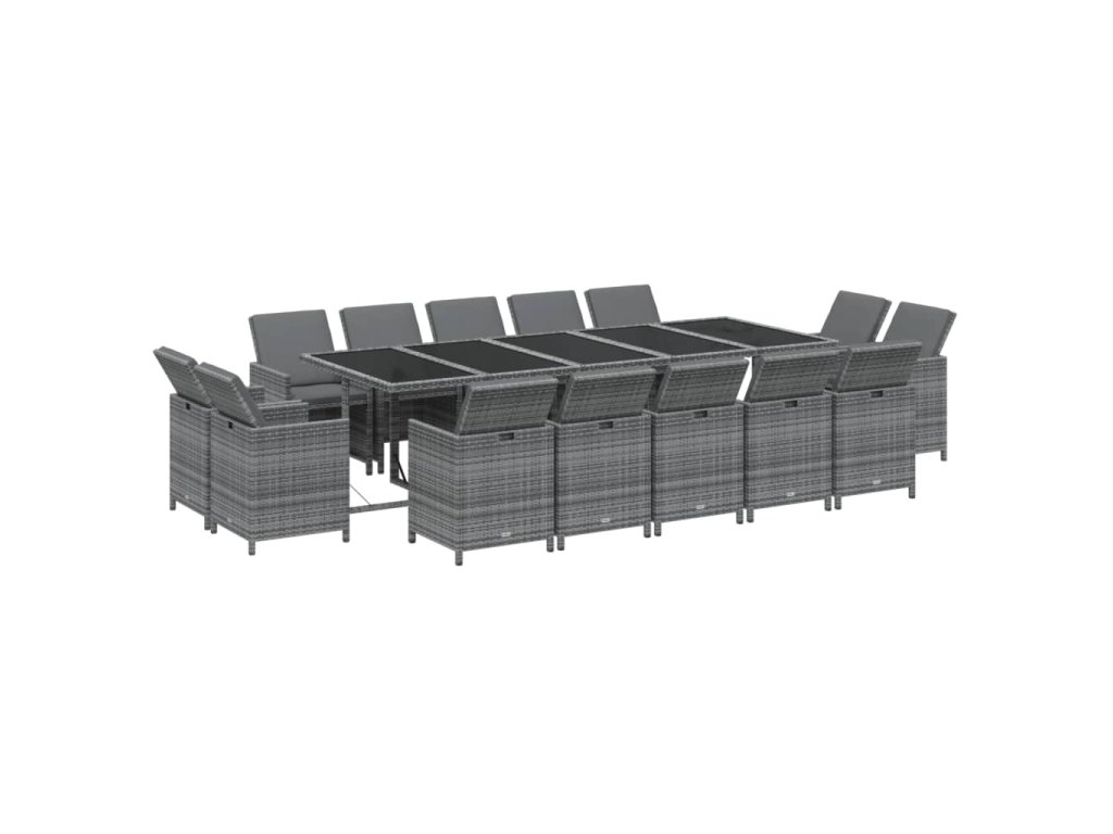 15dílný zahradní jídelní set s poduškami polyratan šedý 3095591