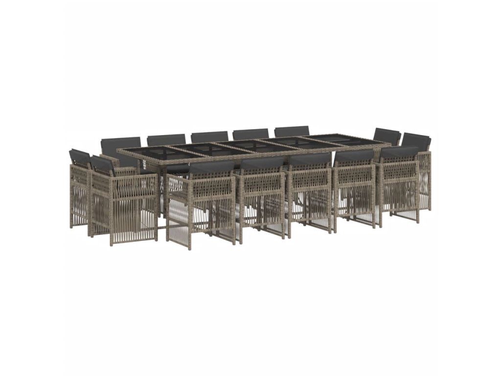 15dílný zahradní jídelní set s poduškami šedý polyratan 3211052