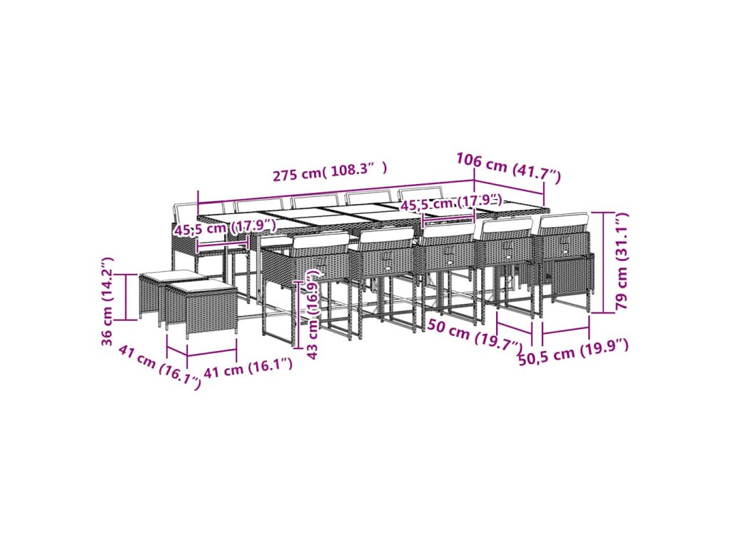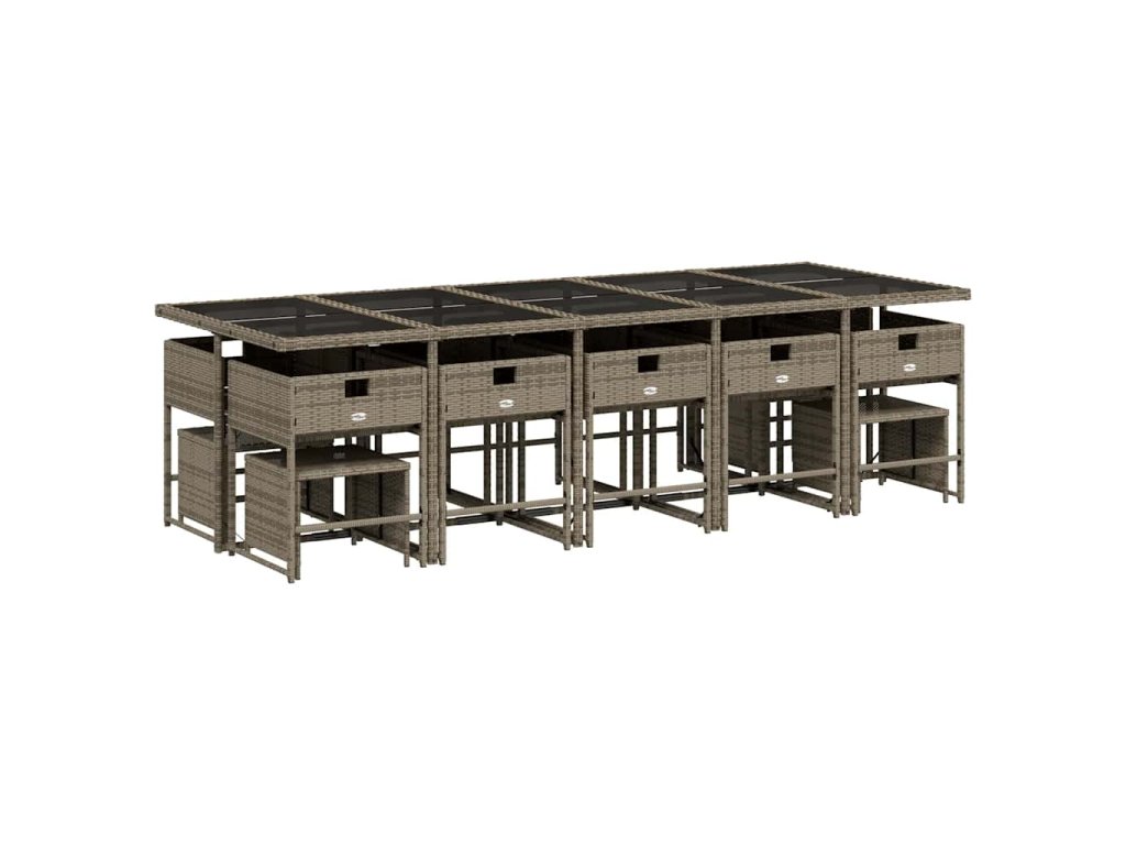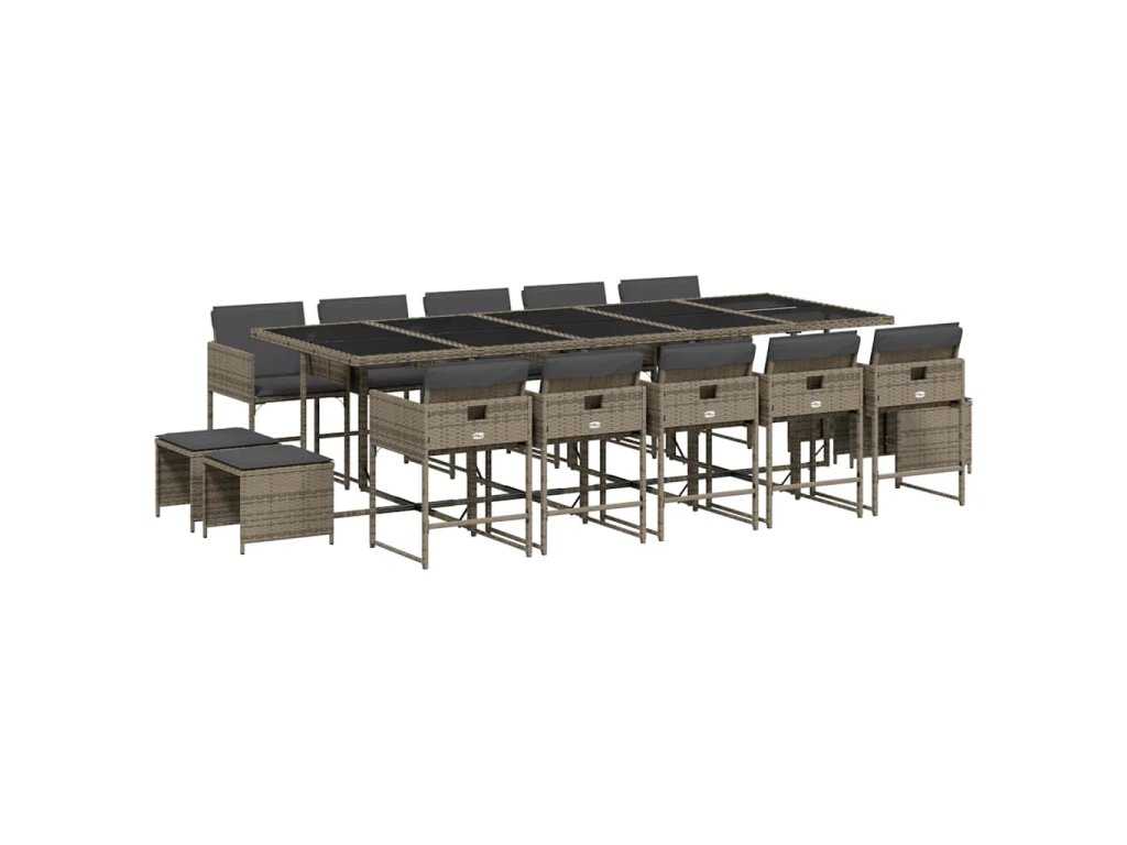 15dílný zahradní jídelní set s poduškami šedý polyratan 3211352