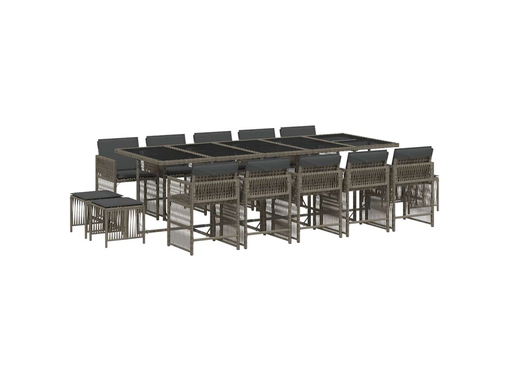 15dílný zahradní jídelní set s poduškami šedý polyratan 3211712