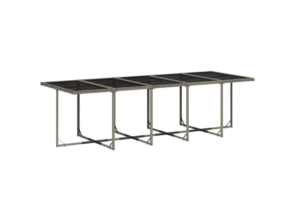 - Skleněná deska stolu: Deska zahradního stolu je zhotovena ze silného a odolného tvrzeného skla, takže ji snadno očistíte vlhkým hadříkem a zároveň do vašeho venkovního prostoru vnese nádech elegance.