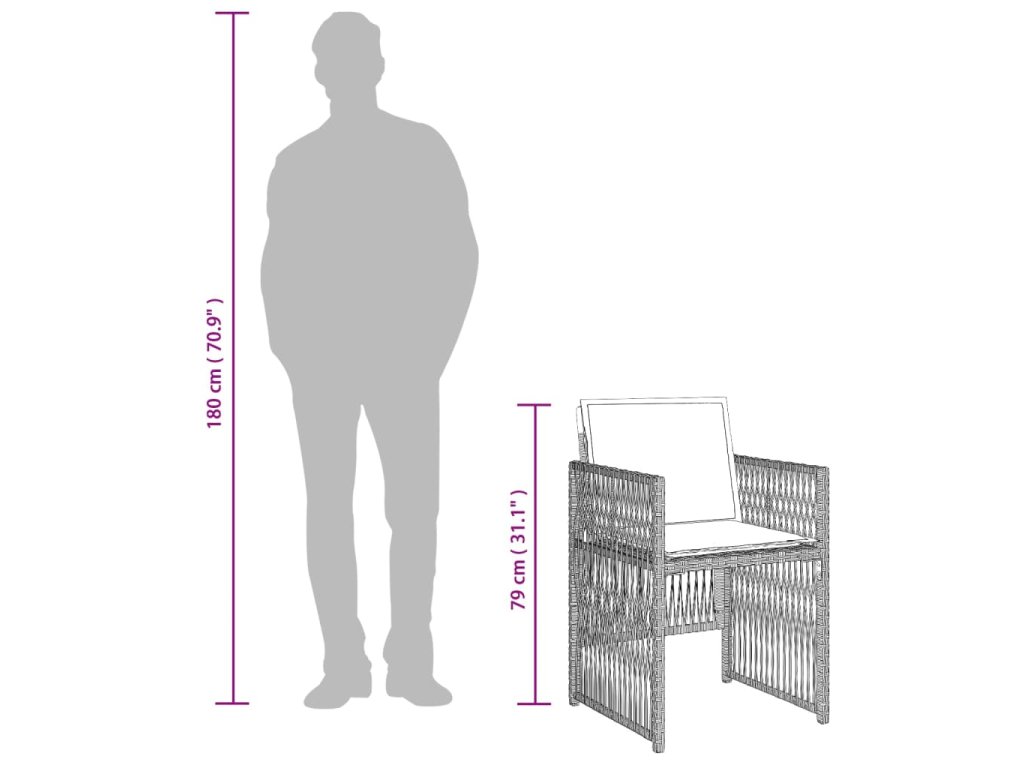 - Odolný materiál: PE ratan neboli polyratan je pevný syntetický materiál s nízkými nároky na údržbu, který vypadá jako přírodní ratan. Je lehký, snadno se čistí a běžně se používá pro venkovní nábytek díky své dlouhé životnosti a odolnosti vůči povětrnostním vlivům.