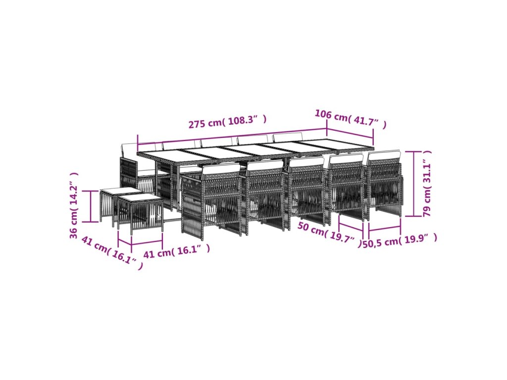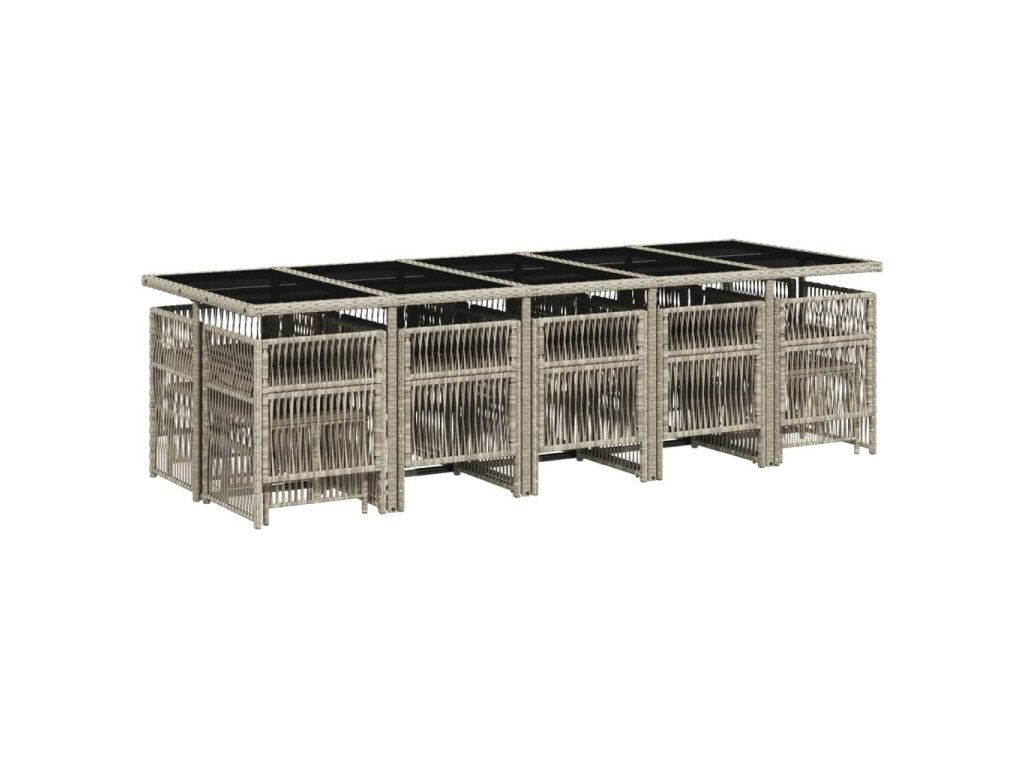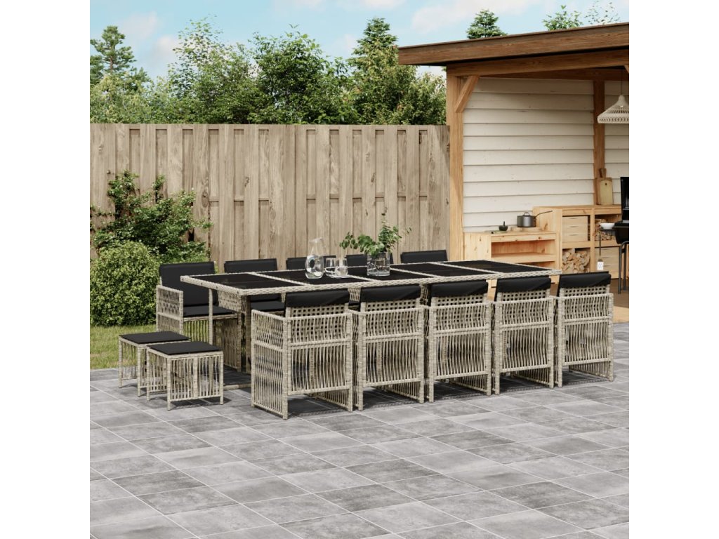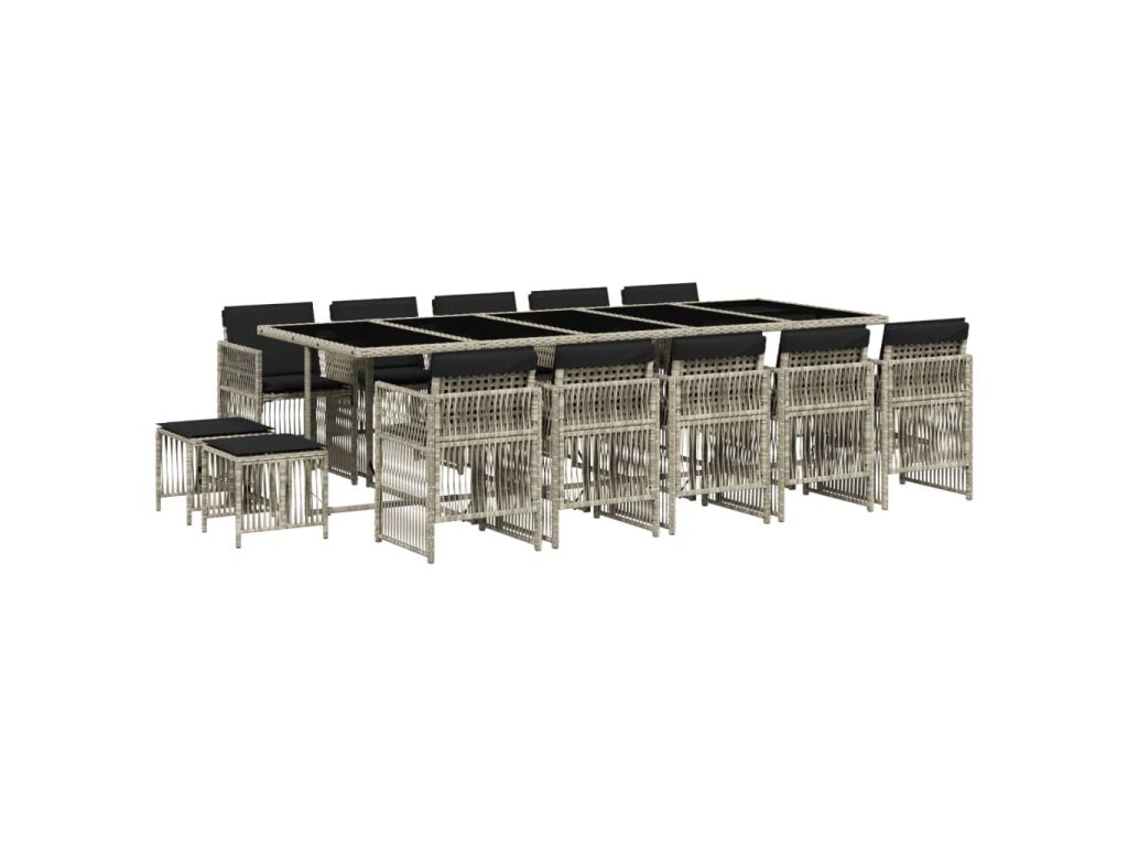 15dílný zahradní jídelní set s poduškami světle šedý polyratan 3210995