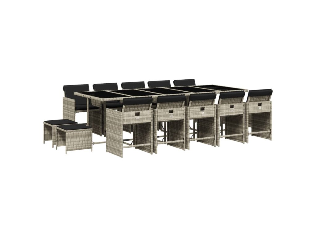15dílný zahradní jídelní set s poduškami světle šedý polyratan 3211175