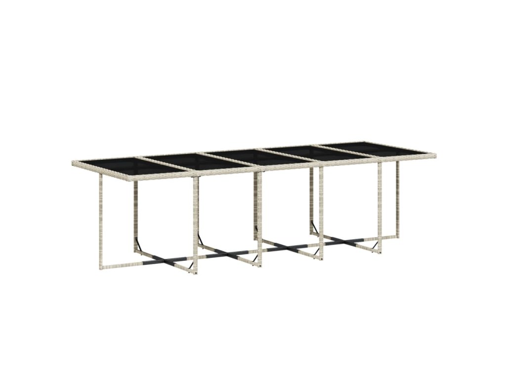 - Stabilní a snadno čistitelná stolní deska: Tento zahradní stůl má desku z tvrzeného skla, která je stabilní, odolná a snadno se čistí vlhkým hadříkem.