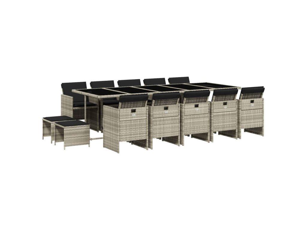 15dílný zahradní jídelní set s poduškami světle šedý polyratan 3277762