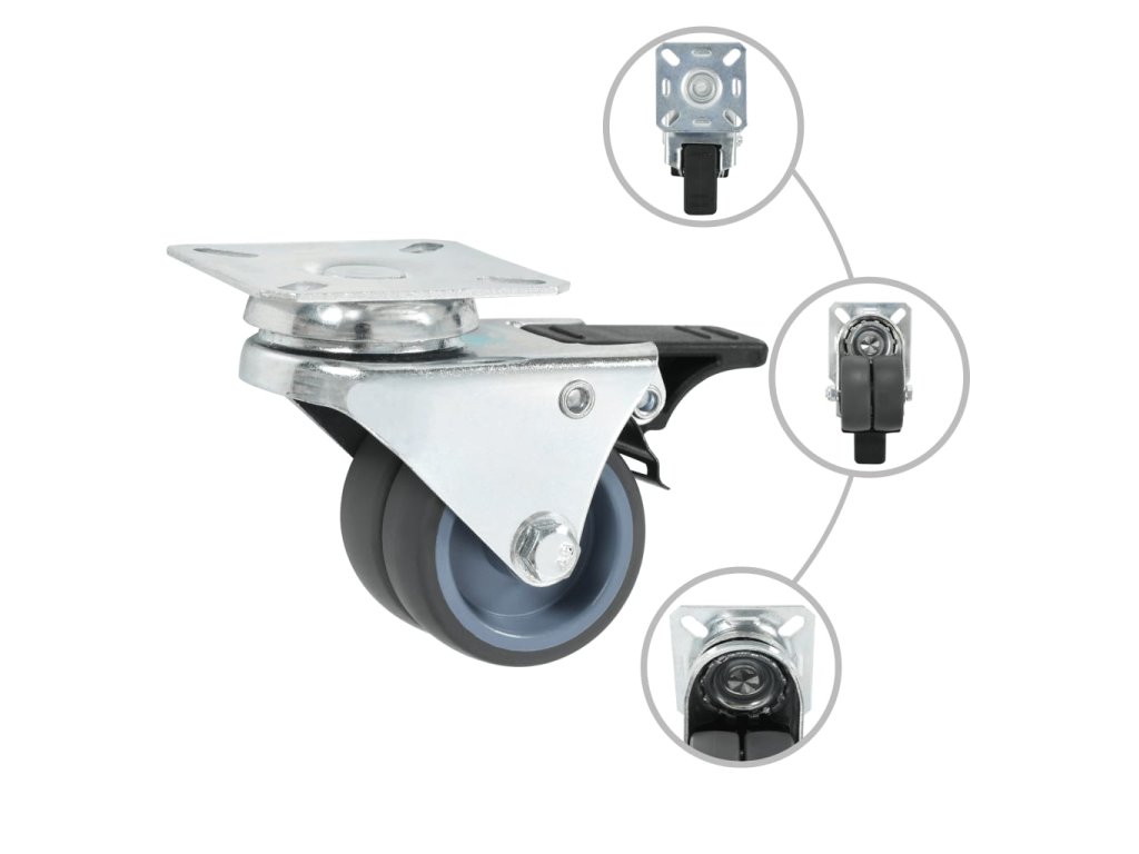 Kolečka jsou vyrobená z TPR (termoplastické gumy), která je známá pro svou schopnost pohlcovat nárazy a vibrace. Ať už tedy kolečka namontujete na cokoliv, budete to moci přesouvat hladce a v tichosti. Jejich hladký povrch navíc ochrání vaši podlahu před poškrábáním. Zinkem potažený železný rám je odolný proti rzi, dodává kolečkům na odolnosti a prodlužuje jejich životnost. Navíc jsou vybavená brzdou pro flexibilnější kontrolu. Každé kolečko má maximální nosnost až 100 kg.