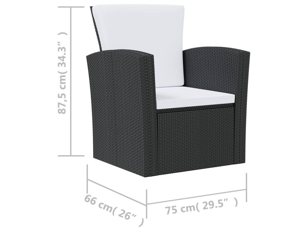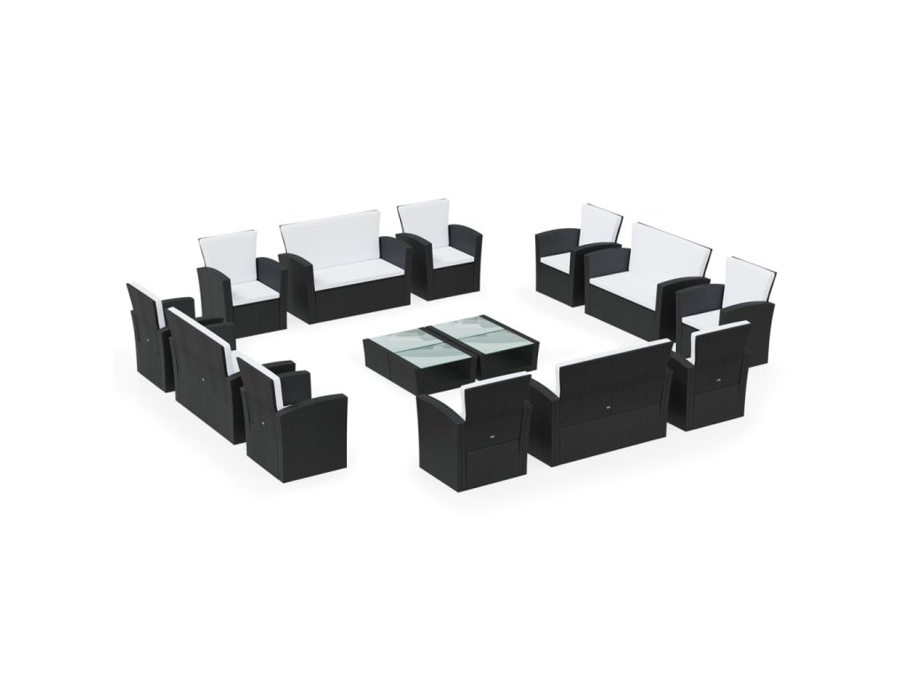 16dílná zahradní sedací souprava s poduškami polyratan černá 3095942