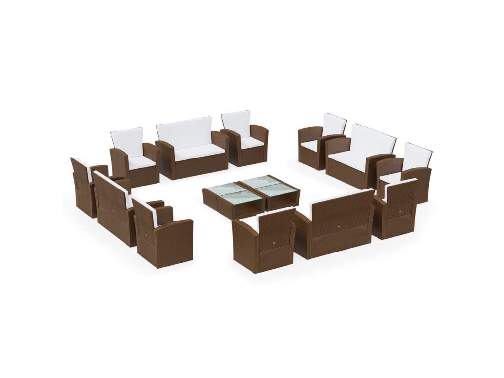 16dílná zahradní sedací souprava s poduškami polyratan hnědá 3095944