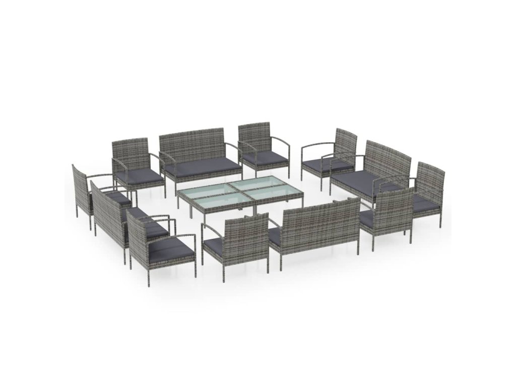 16dílná zahradní sedací souprava s poduškami polyratan šedá 3095968