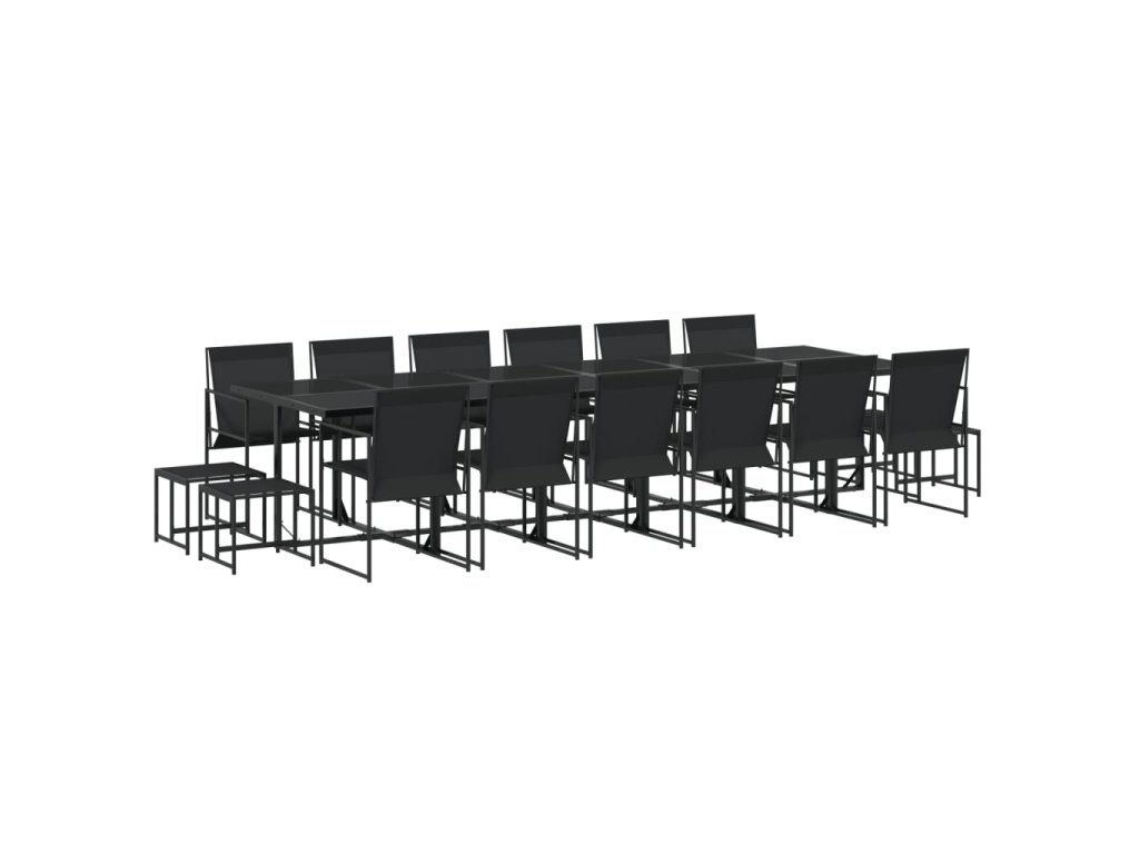 17dílný zahradní jídelní set černý textilen 3295132