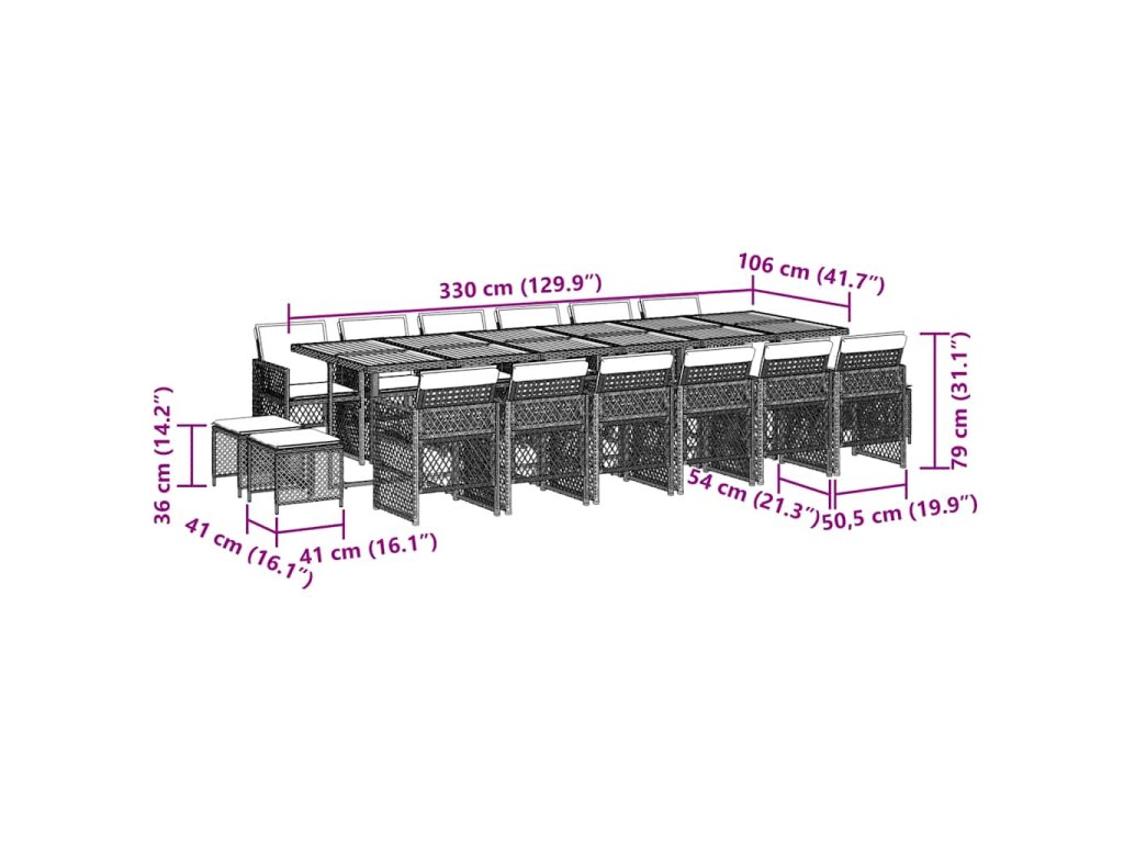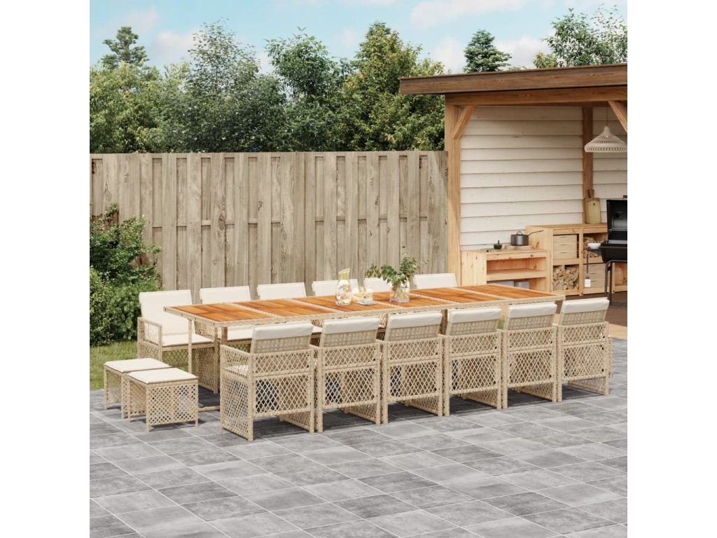 17dílný zahradní jídelní set s poduškami béžový polyratan 3210832
