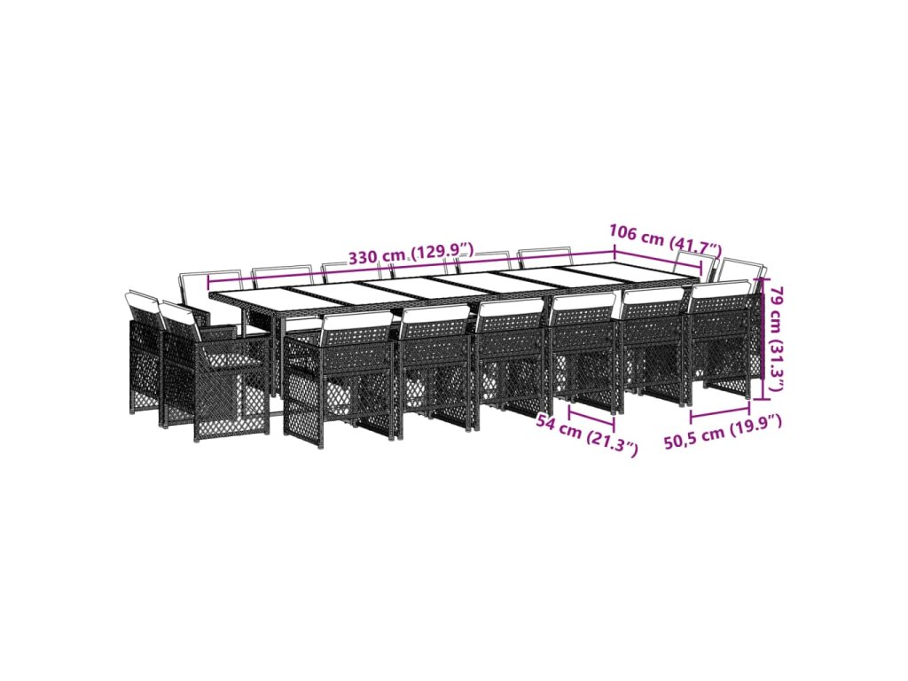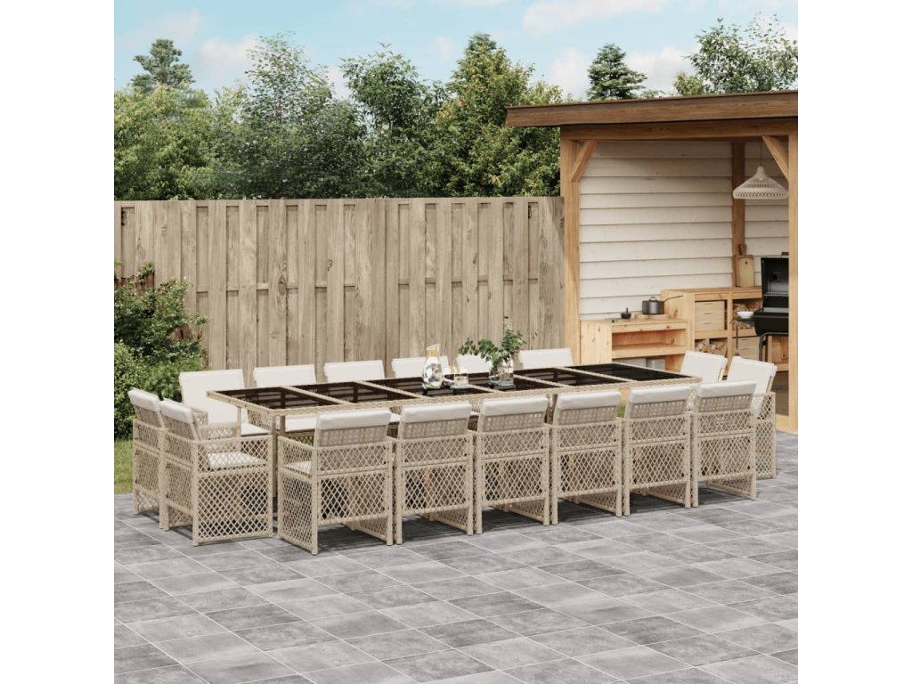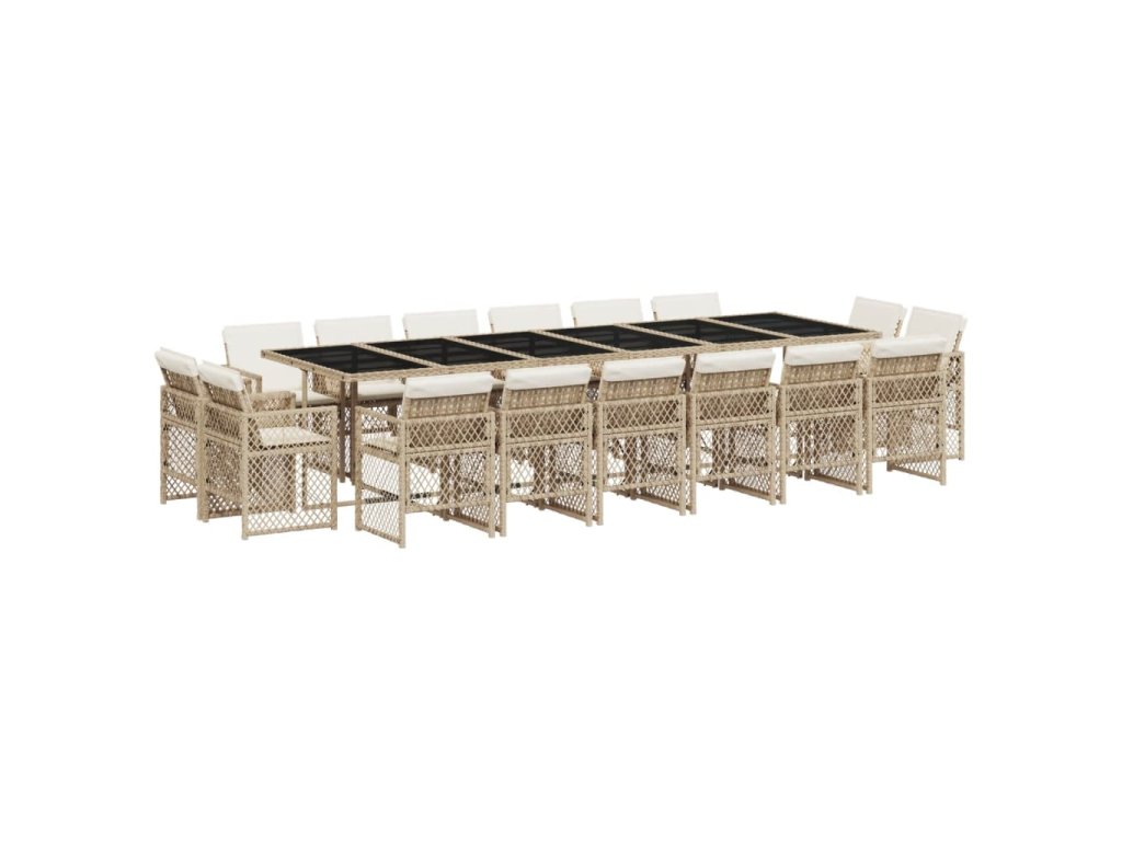 17dílný zahradní jídelní set s poduškami béžový polyratan 3210886