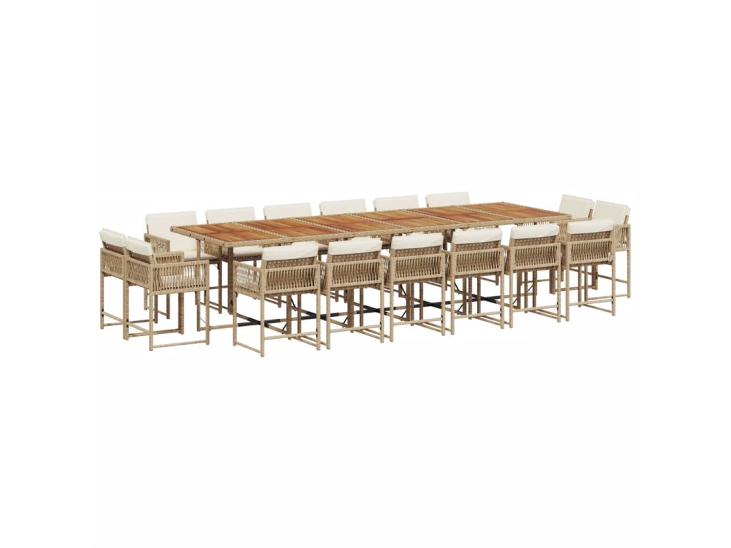 17dílný zahradní jídelní set s poduškami béžový polyratan 3211612