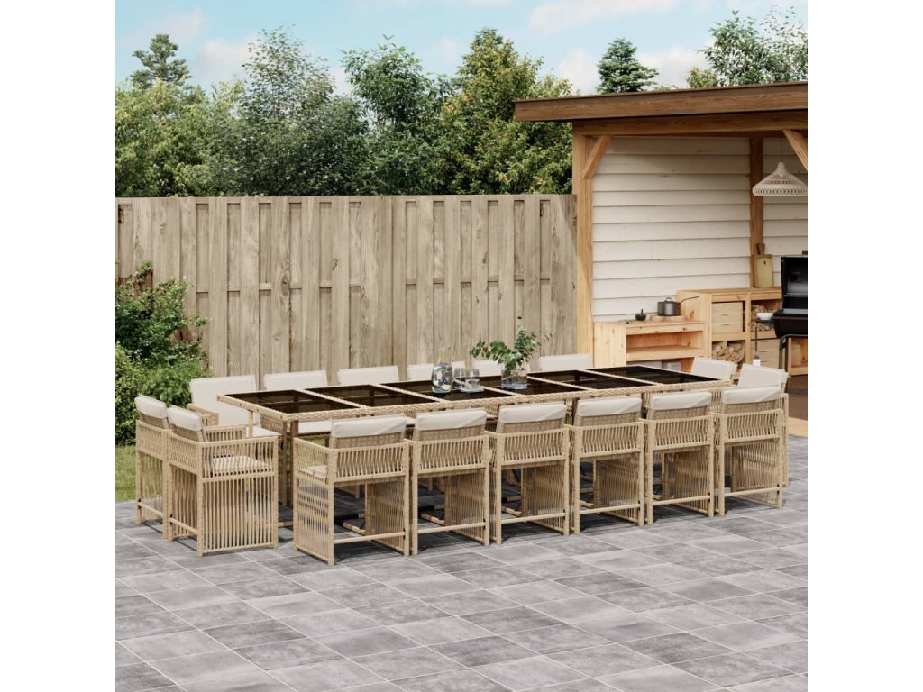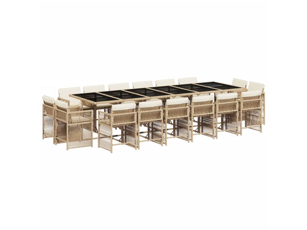 17dílný zahradní jídelní set s poduškami béžový polyratan 3211786