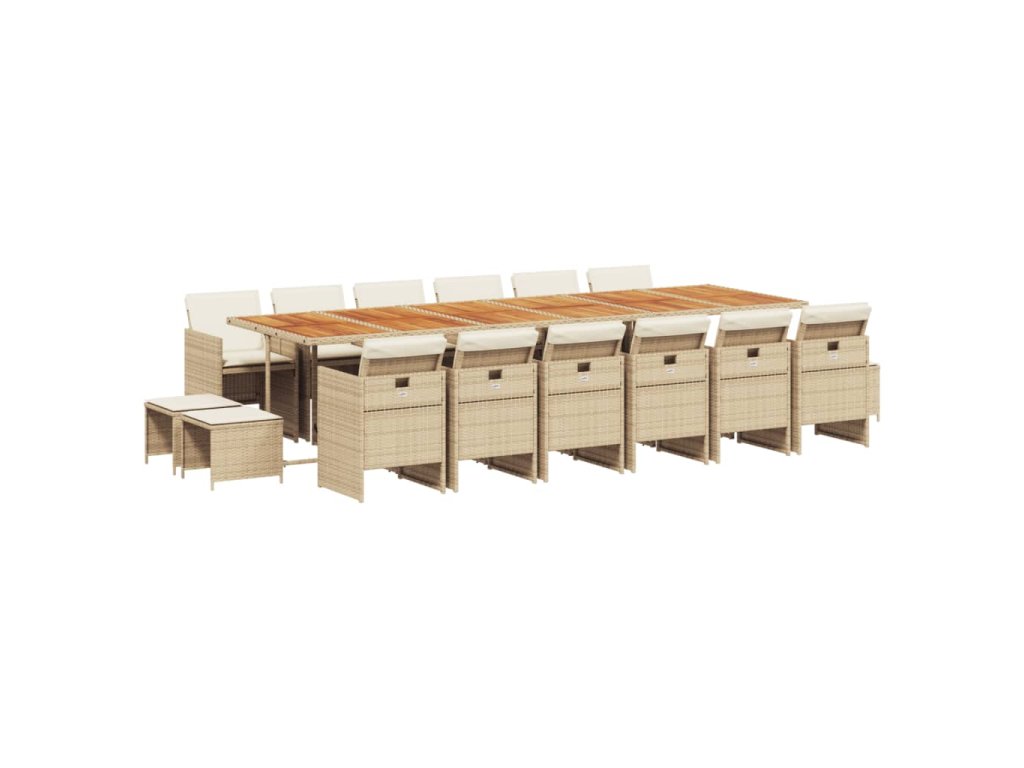 17dílný zahradní jídelní set s poduškami béžový polyratan 3277779