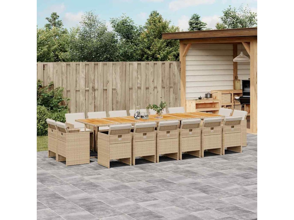 17dílný zahradní jídelní set s poduškami béžový polyratan 3277839