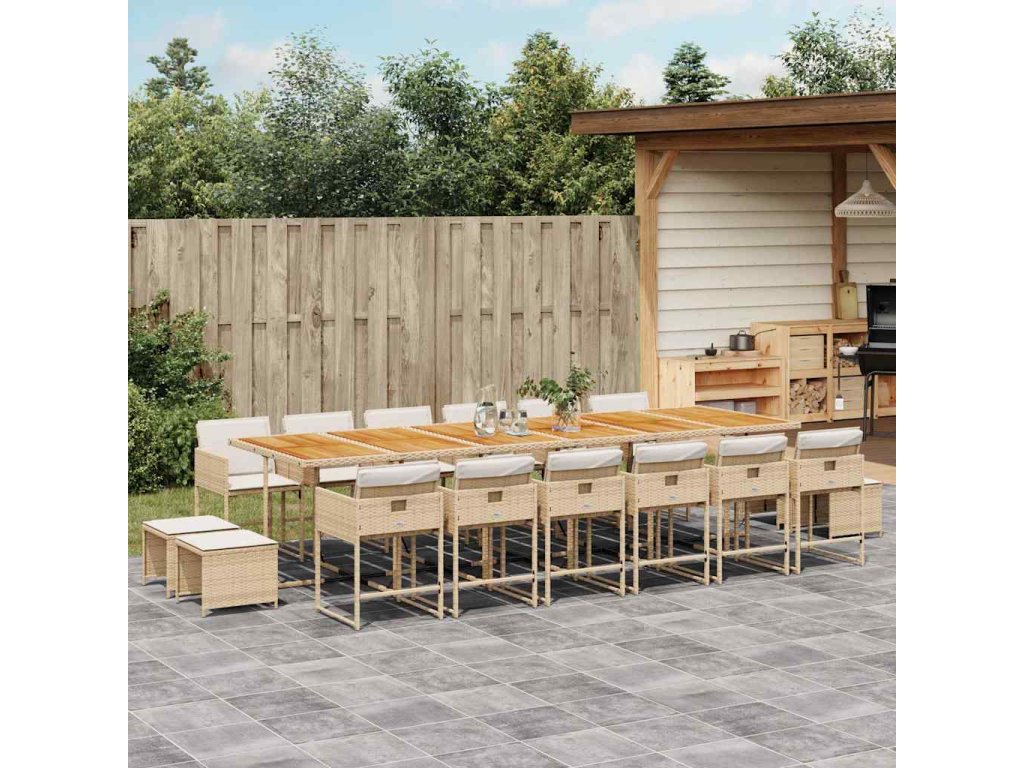 17dílný zahradní jídelní set s poduškami béžový polyratan 3278139