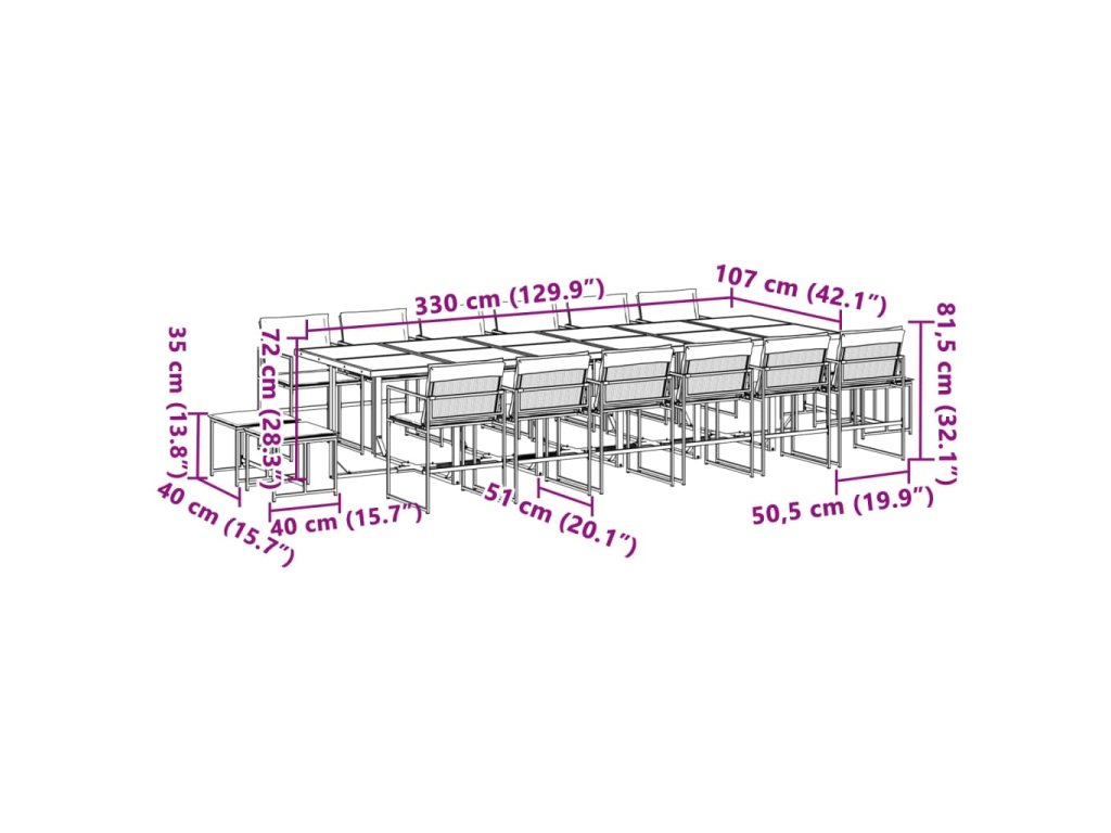 - Robustní a stabilní rám: Ocelový rám s práškovým nástřikem zajišťuje, že zahradní nábytek je pevný a stabilní pro každodenní venkovní použití.