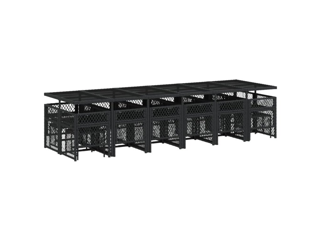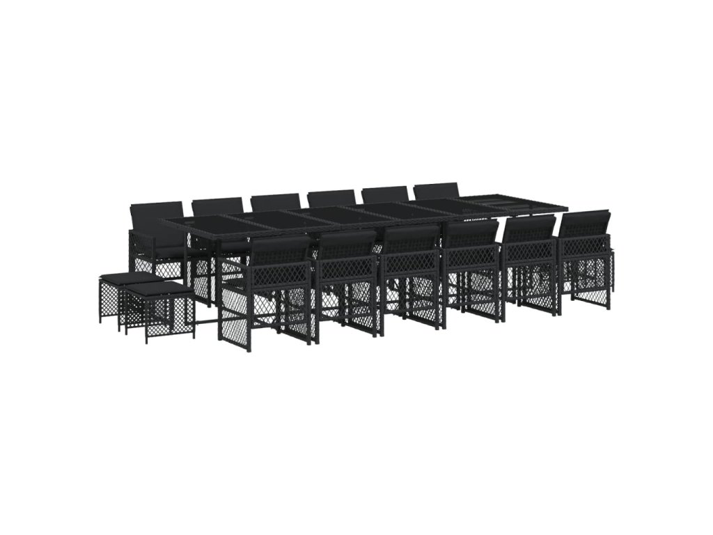 17dílný zahradní jídelní set s poduškami černý polyratan 3210823