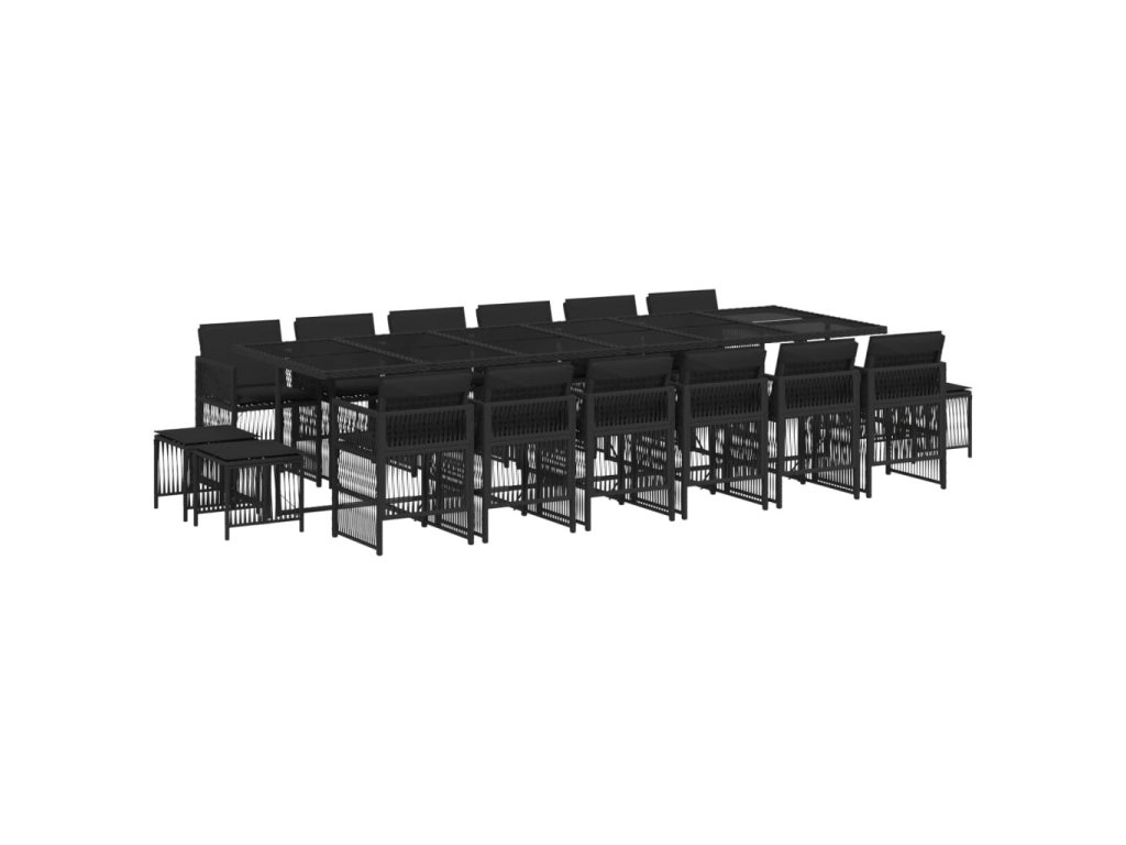 17dílný zahradní jídelní set s poduškami černý polyratan 3211003
