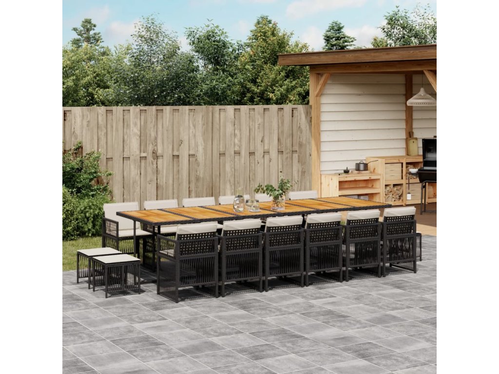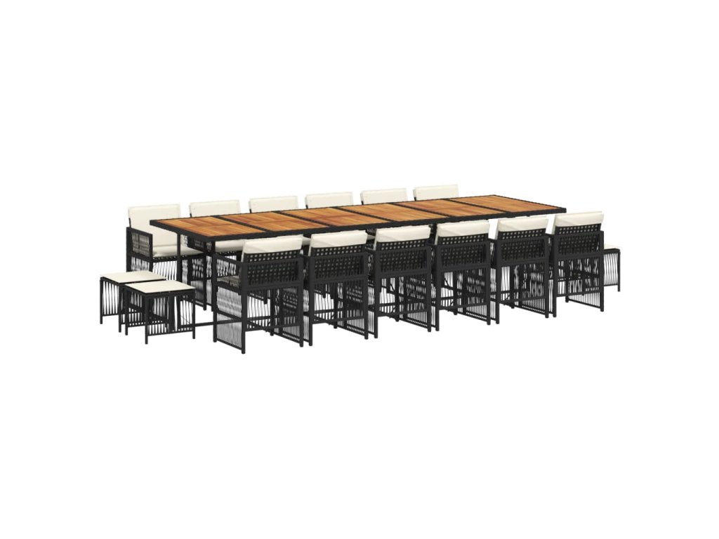 17dílný zahradní jídelní set s poduškami černý polyratan 3211011