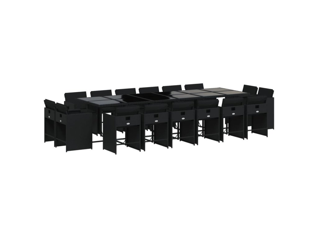 17dílný zahradní jídelní set s poduškami černý polyratan 3211243