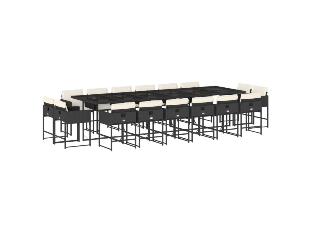 17dílný zahradní jídelní set s poduškami černý polyratan 3211422