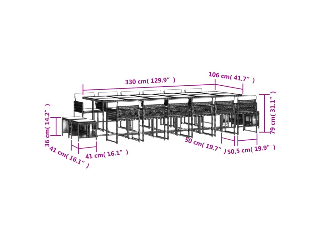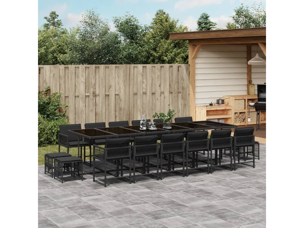17dílný zahradní jídelní set s poduškami černý polyratan 3211543