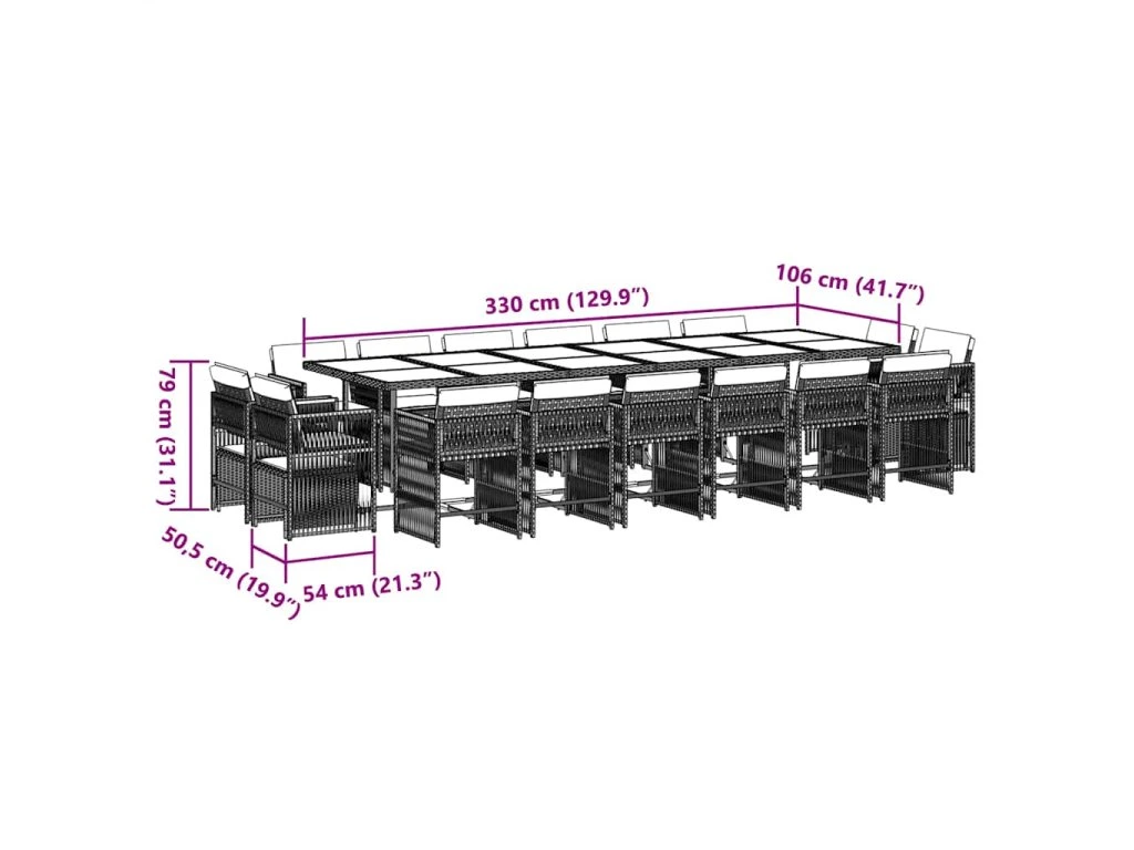 17dílný zahradní jídelní set s poduškami černý polyratan 3211782