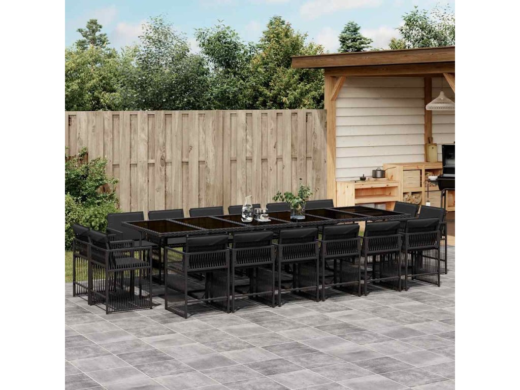 17dílný zahradní jídelní set s poduškami černý polyratan 3211783