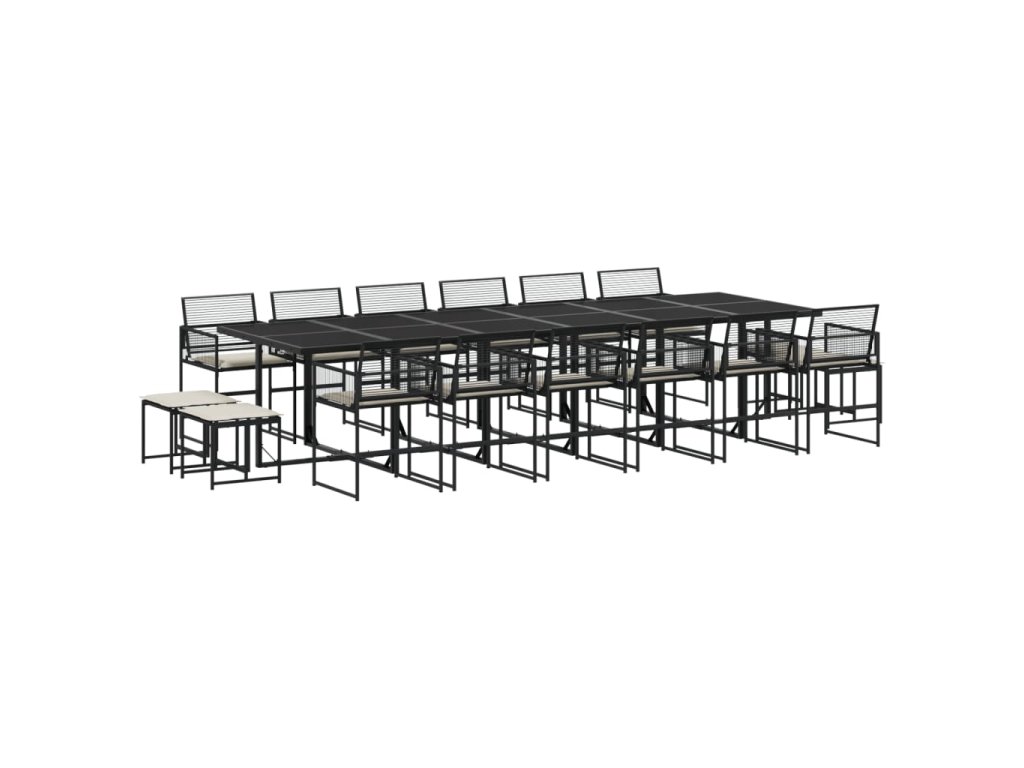 17dílný zahradní jídelní set s poduškami černý polyratan 3295022