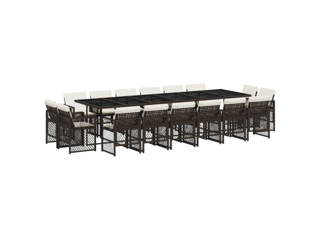 17dílný zahradní jídelní set s poduškami hnědý polyratan 3210885