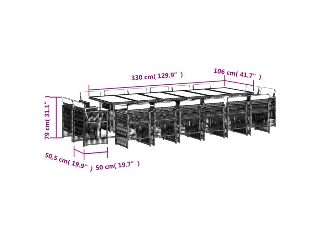 17dílný zahradní jídelní set s poduškami hnědý polyratan 3211065