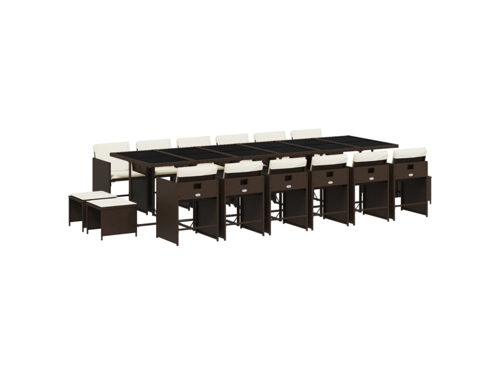 17dílný zahradní jídelní set s poduškami hnědý polyratan 3211185