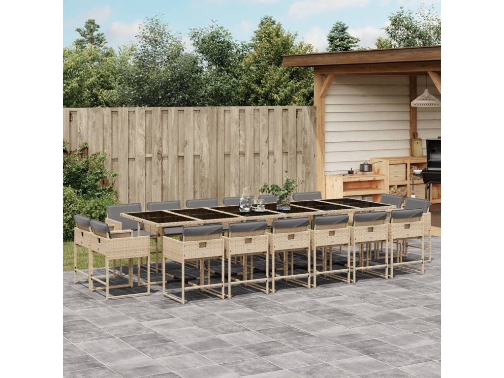 17dílný zahradní jídelní set s poduškami mix béžové polyratan 3211428