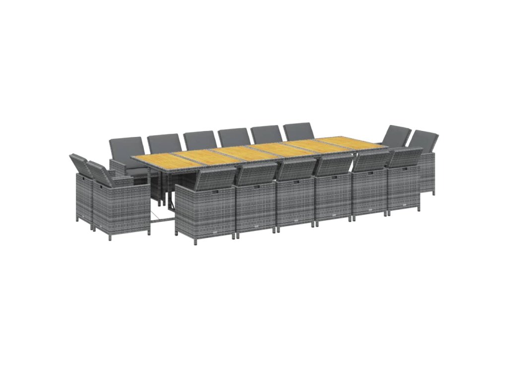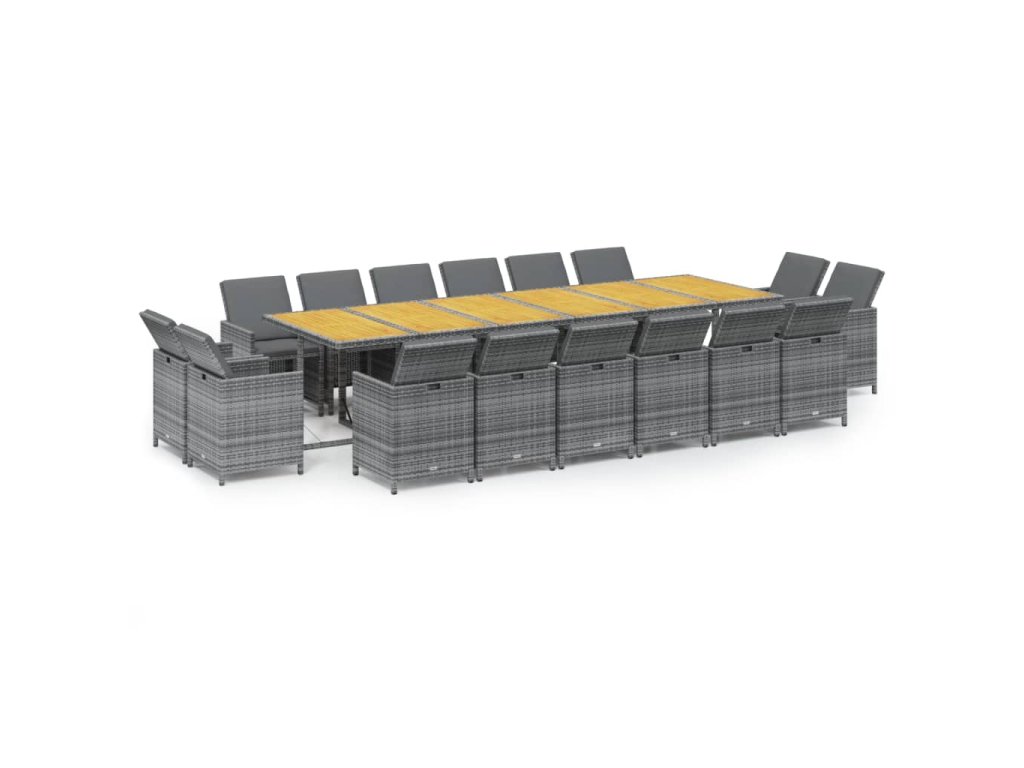 17dílný zahradní jídelní set s poduškami polyratan šedý 3095633