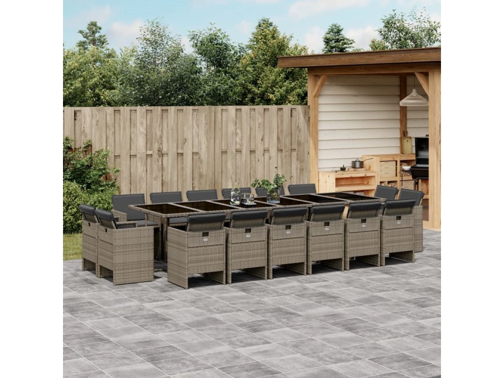 17dílný zahradní jídelní set s poduškami šedý polyratan 3210704