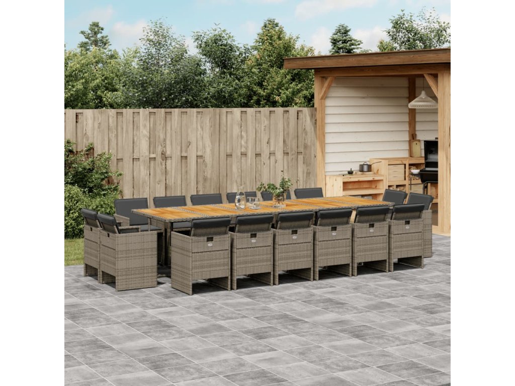 17dílný zahradní jídelní set s poduškami šedý polyratan 3210710