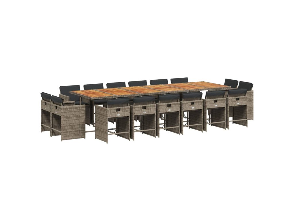 17dílný zahradní jídelní set s poduškami šedý polyratan 3211250