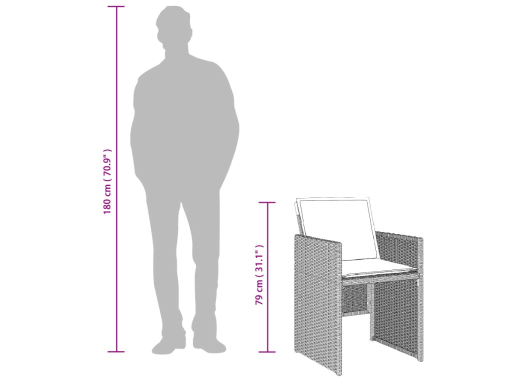 - Odolný materiál: PE ratan neboli polyratan je pevný syntetický materiál s nízkými nároky na údržbu, který vypadá jako přírodní ratan. Je lehký, snadno se čistí a běžně se používá pro venkovní nábytek díky své dlouhé životnosti a odolnosti vůči povětrnostním vlivům.
