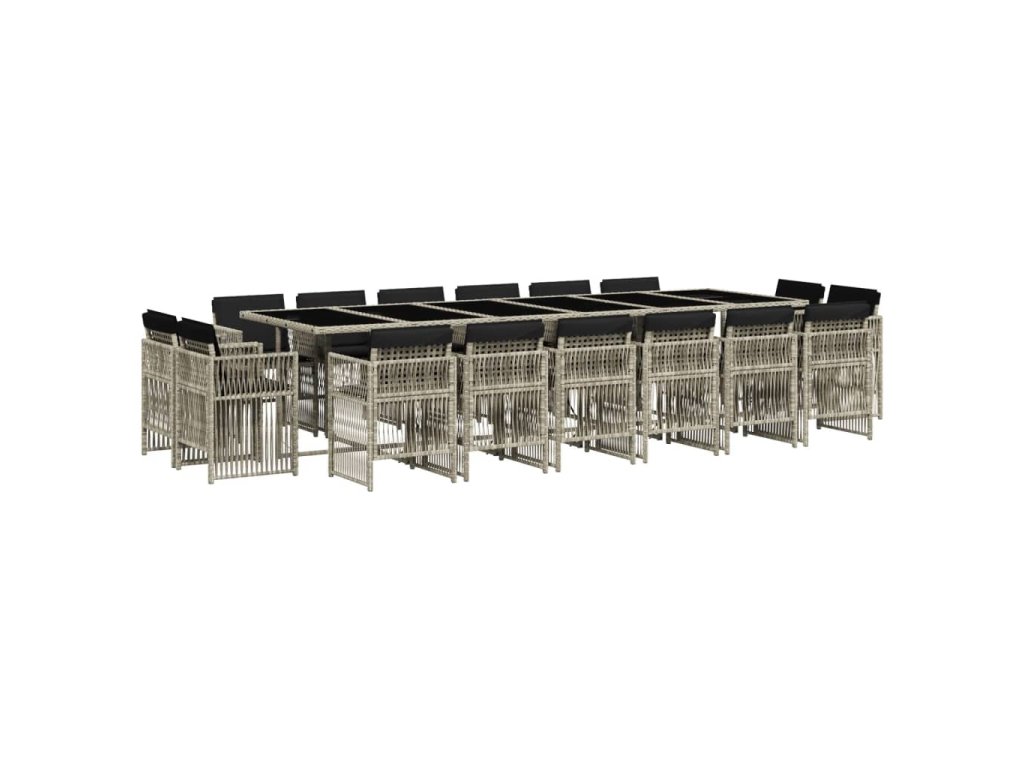 17dílný zahradní jídelní set s poduškami světle šedý polyratan 3211067