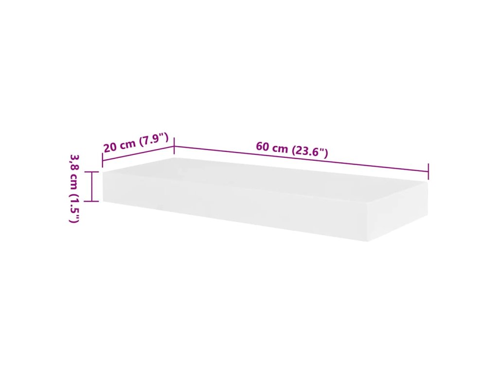 2 bílé nástěnné plovoucí MDF police na knihy a DVD 242183