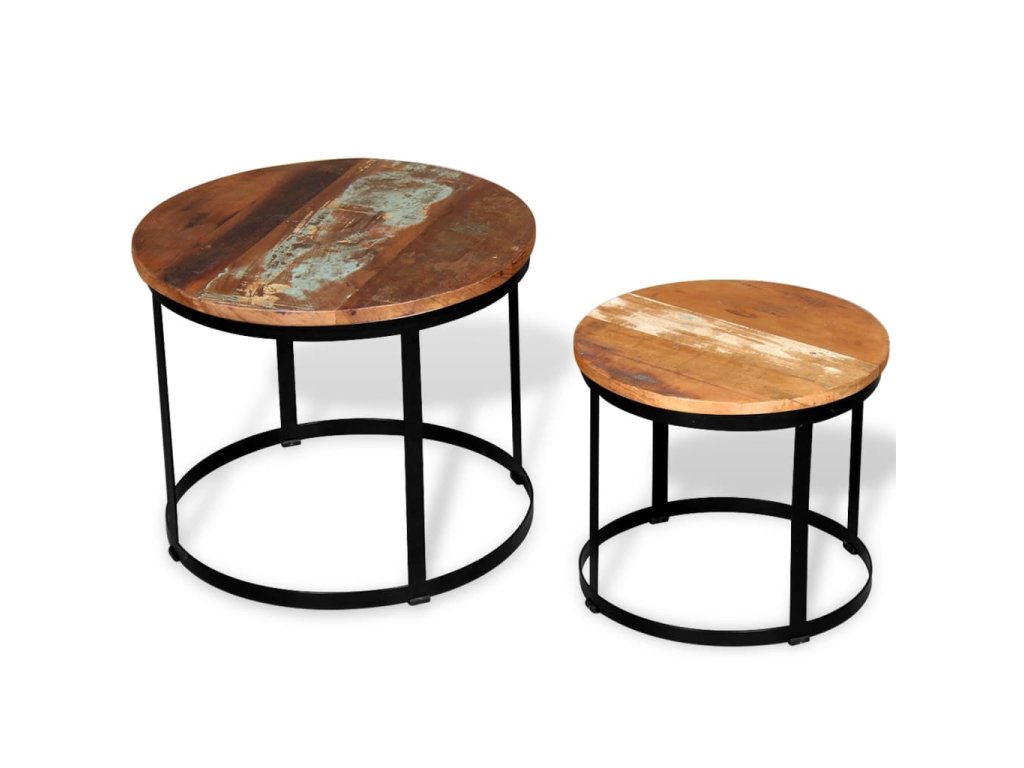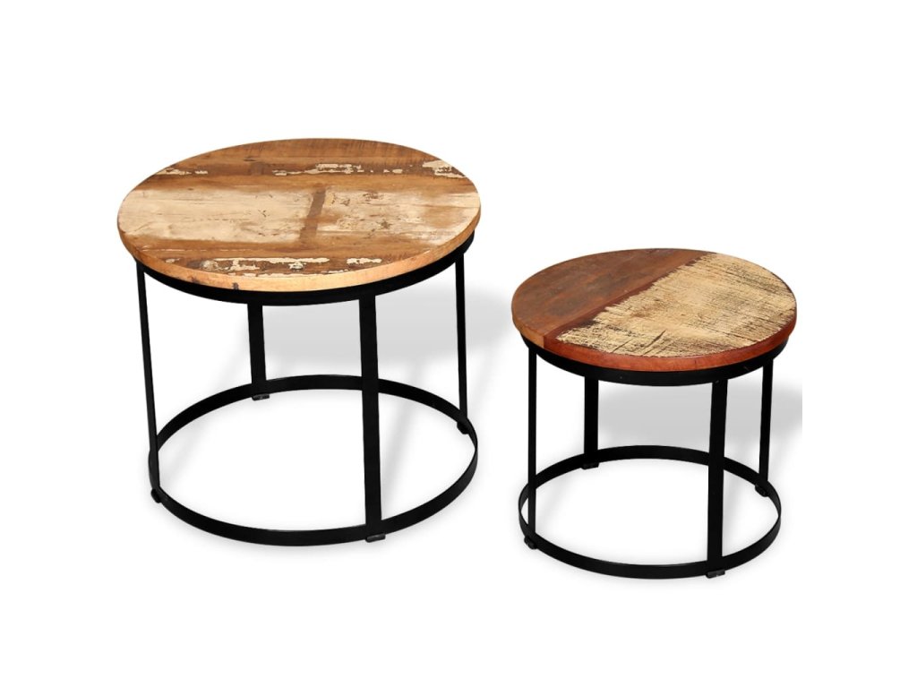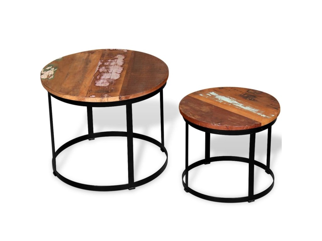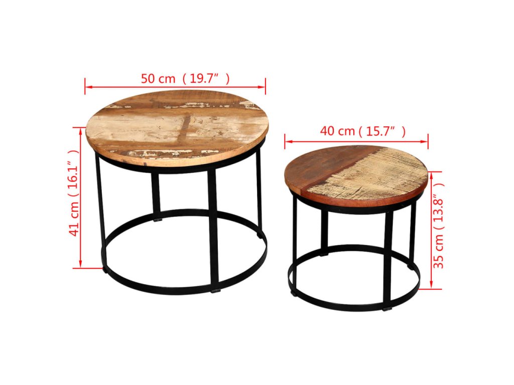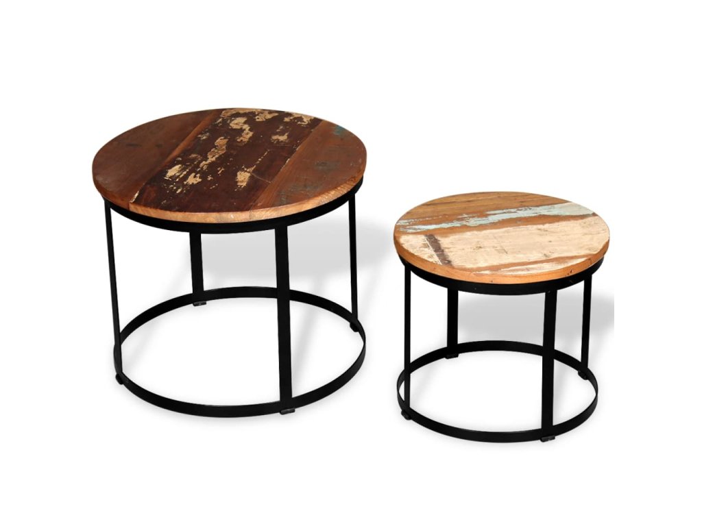 2 konferenční stolky masivní recyklované dřevo kulaté 40cm/50cm 244007