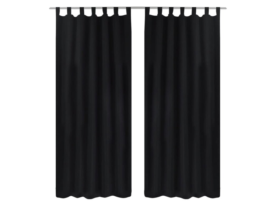 2 ks černé mikrosaténové závěsy s poutky 140 x 175 cm 130353