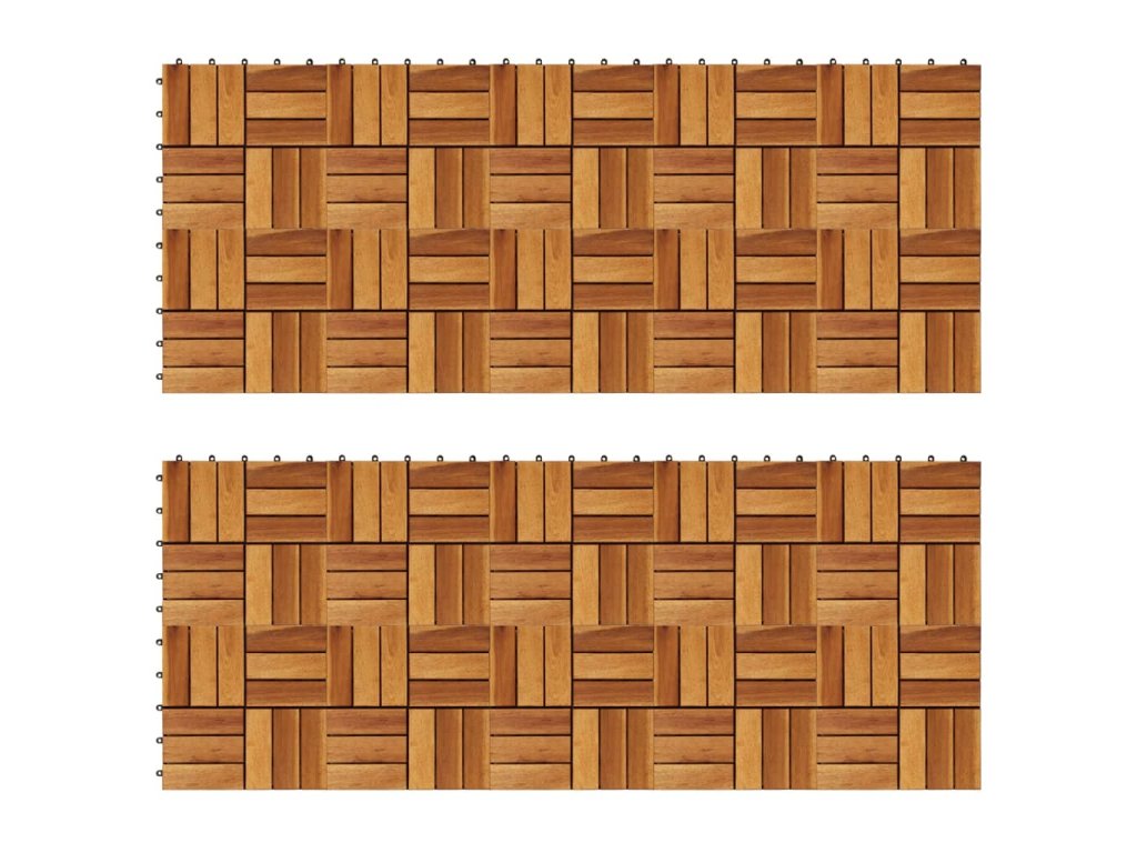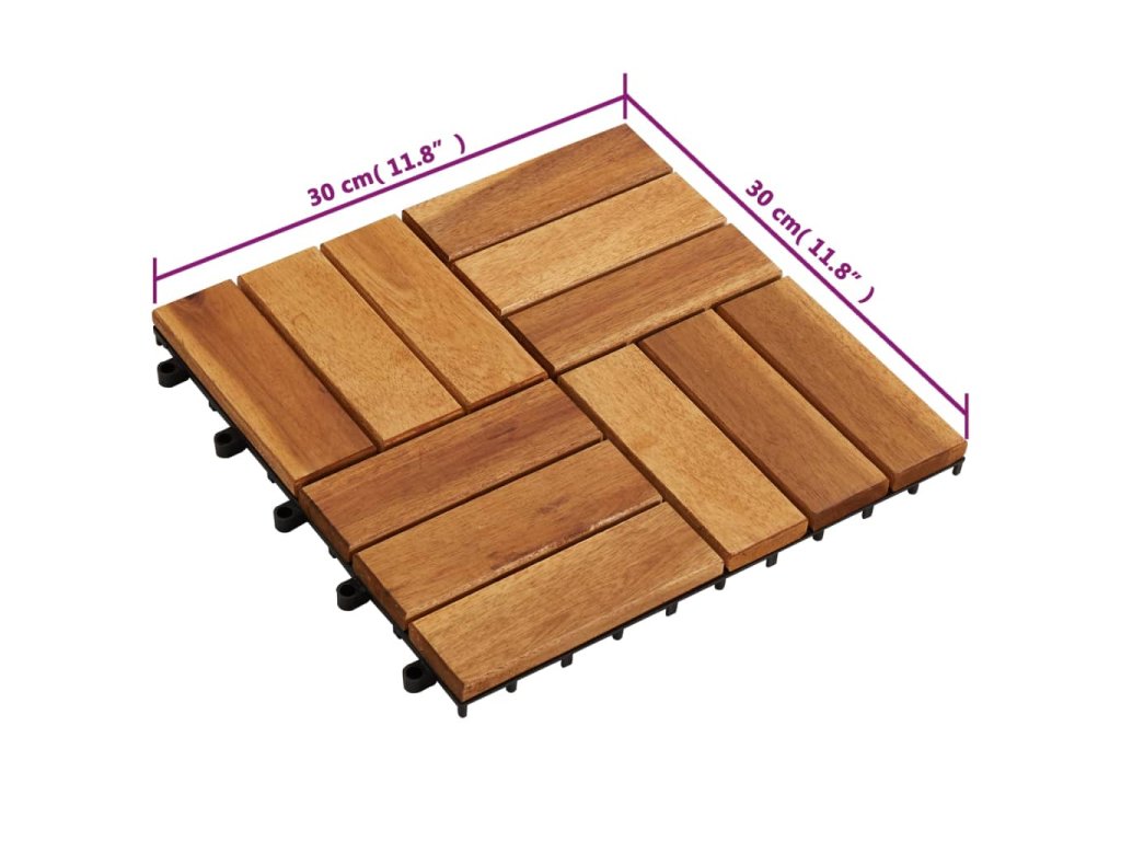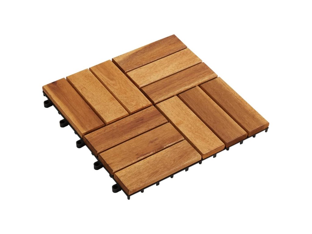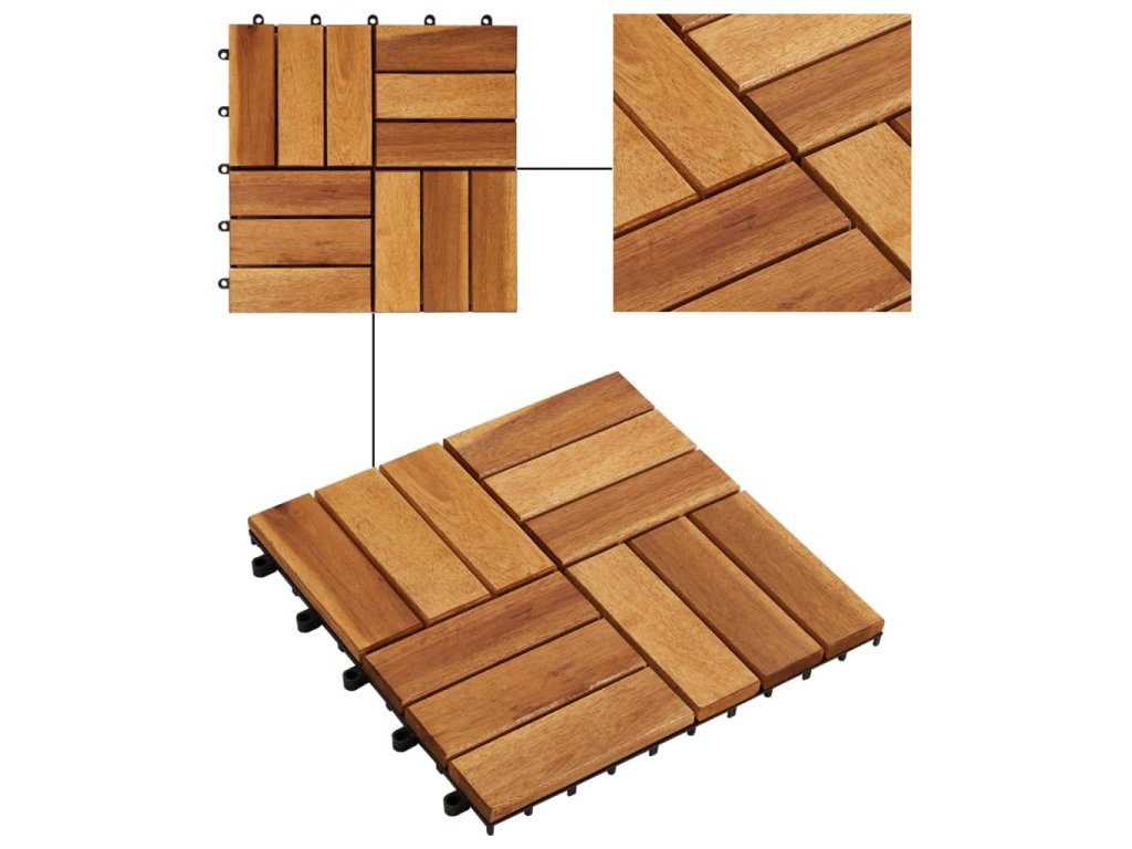 Podlahové dlaždice jsou vyrobené z kvalitního akáciového dřeva, což je tropické tvrdé dřevo, které je samozřejmně odolné proti vlivům počasí a má dlouhou životnost. Díky zacvakávacím spojením do sebe dlaždice jednoduše a těsně zapadnou a vytvoří tak stabilní povrch.