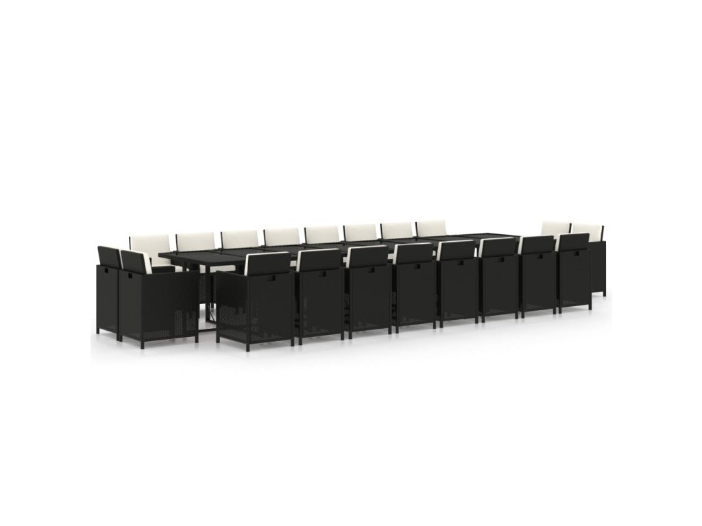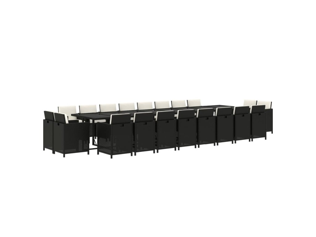 21dílný zahradní jídelní set s poduškami černý polyratan 3095667