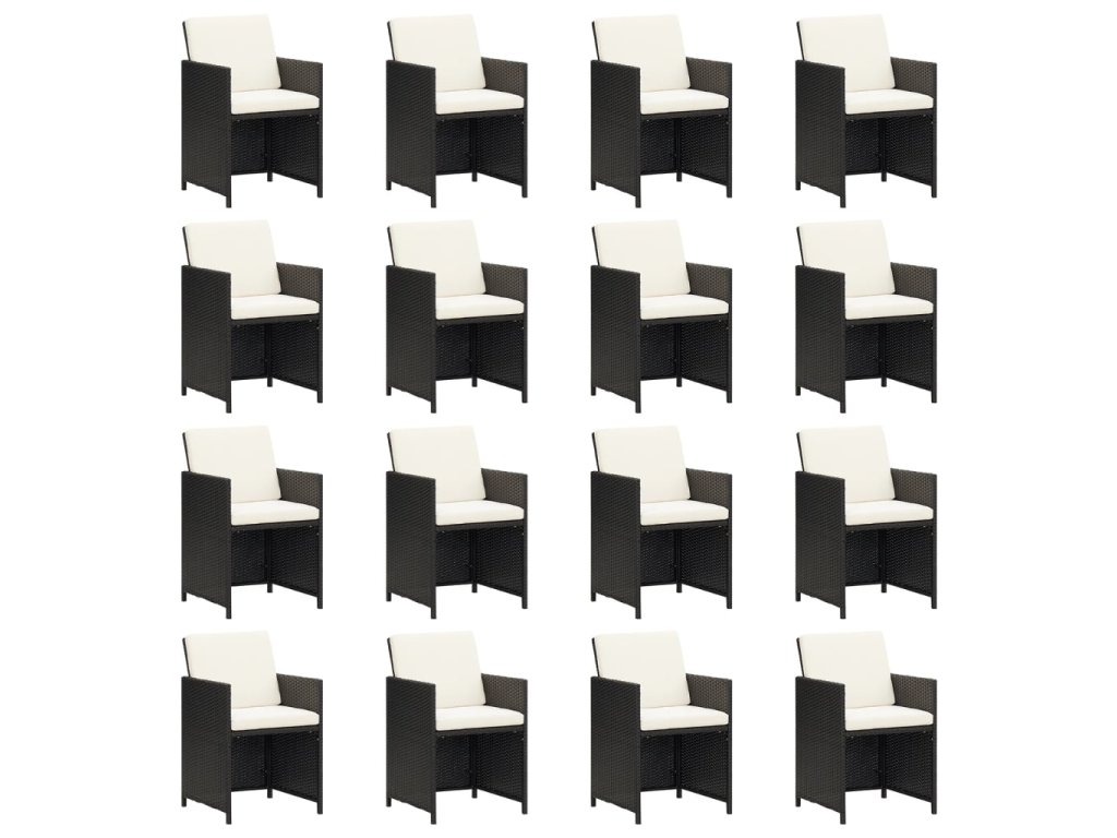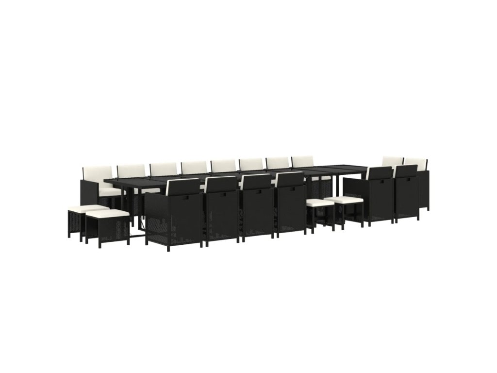 21dílný zahradní jídelní set s poduškami černý polyratan 3095669