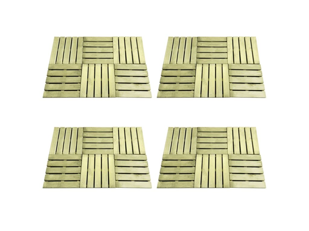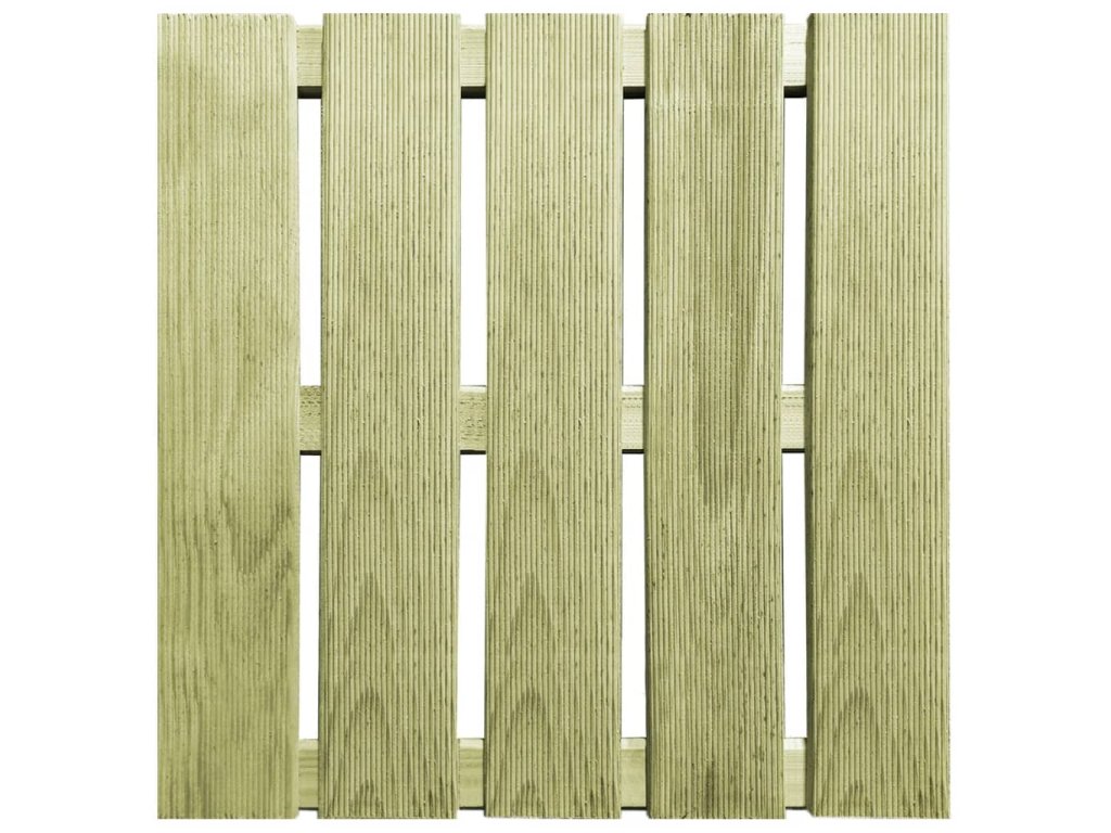 Terasové dlaždice jsou vyrobené z impregnovaného borového dřeva. Jedná se o velmi odolné dřevo, které nepodléhá hnilobě ani vlivům počasí. Překrásná kresba dřeva propůjčuje dlaždicím rustikální kouzlo a jedinečný, neopakovatelný vzhled. Balení obsahuje 24 terasových dlaždic.