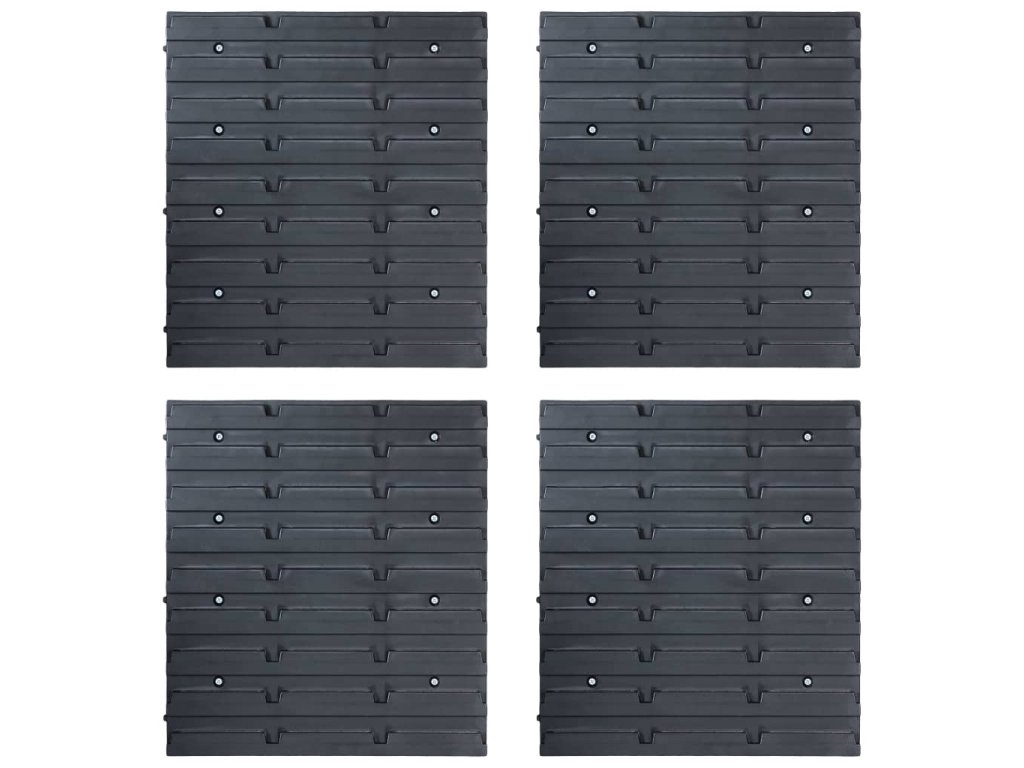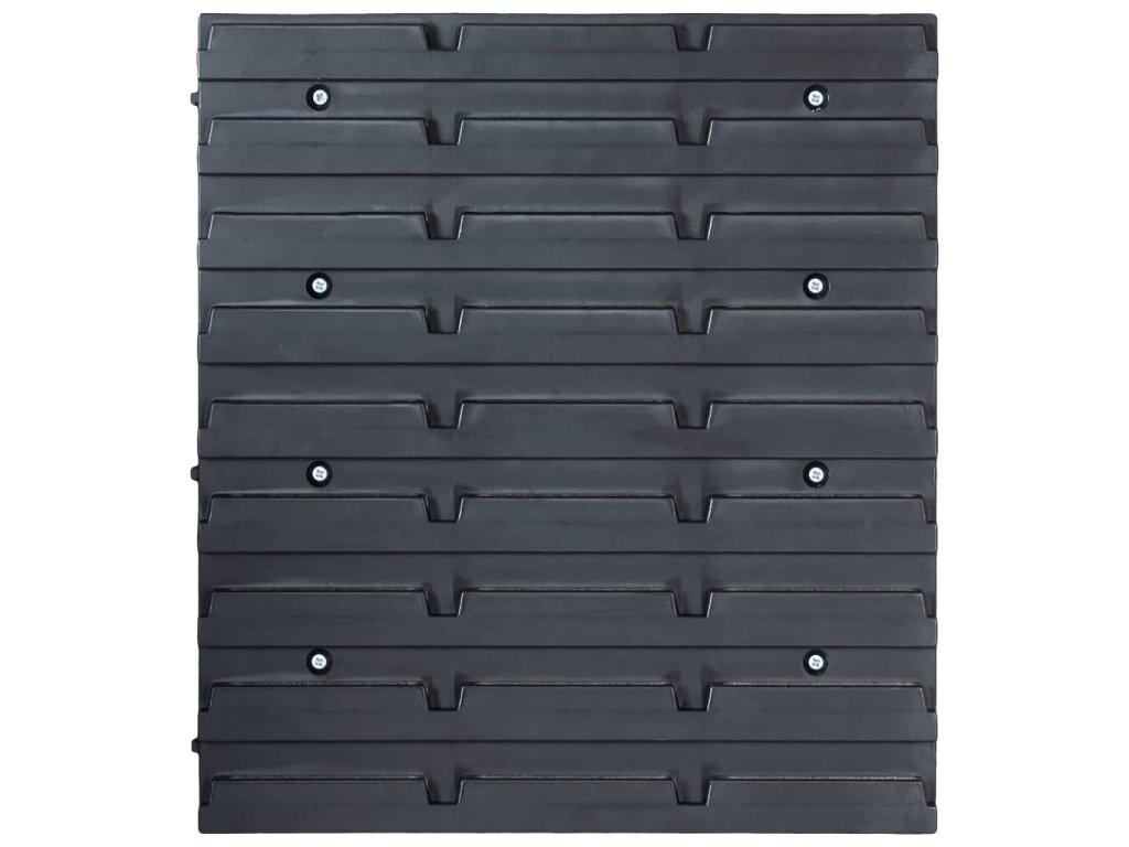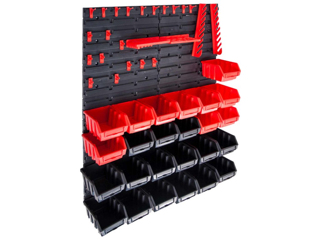 Tyto funkční panely se stohovatelnými boxy nabízí celou řadu možností pro ukládání malých součástek, jako jsou šrouby, hřebíky, matice, objímky, spojky apod. Do 4 pevných nástěnných panelů jsou připevněné držáky a upínače pro nejrůznější typy nářadí a 25 zásobníků, které si lze označit, abyste měli lepší přehled o jejich obsahu. Jednotlivé boxy můžete také samostatně vytahovat a naskládat je na sebe. Sadu panelů na nářadí je možné libovolně rozšiřovat a dá se snadno namontovat na stěnu garáže nebo kůlny. Soupravu skladovacích zásobníků si můžete přizpůsobit dle vlastních potřeb.